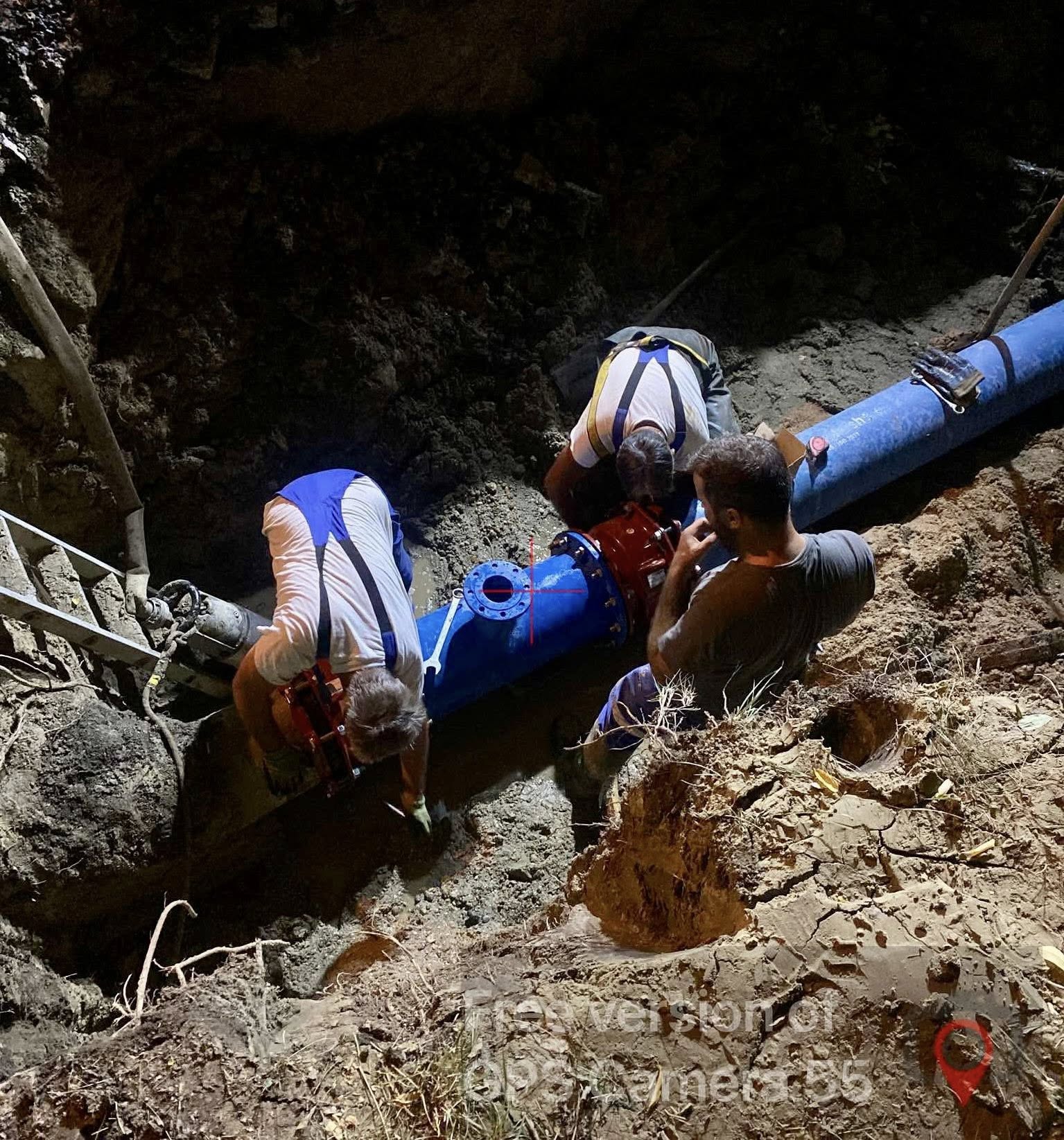 Ezt követően kezdődött meg a hibahelyek feltárása. A szakemberek felvonultak markológépekkel és kellő óvatossággal, a társközművekre figyelemmel nekiálltak a munkának. „Igen ám, de mielőtt megtaláltuk volna a probléma forrását, utunkat állta több olyan erősáramú kábel, amelynek egyrésze feszültség alatt volt, és ez ellehetetlenítette a folytatást. Riasztanunk kellett a társszolgáltató embereit, akik kiszakaszolták az erősáramú kábelt. Ezzel elment 2-3 óra hossza. Majd, amikor biztonságossá vált a munkavégzés, akkor láttunk neki a cső kicserésének és a régi azbesztcementcső helyett egy gömbgrafitos öntöttvascsövet raktunk le erre a szakaszra, melynek élettartama 100 év.” – ecsetelte Kurdi Viktor.