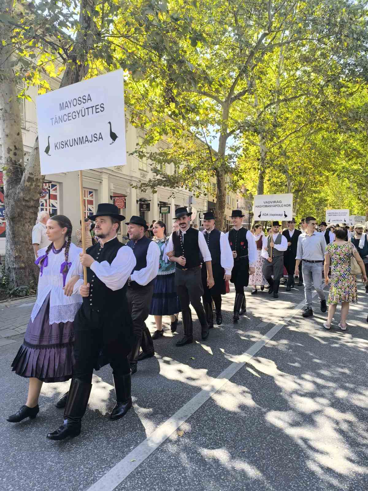 A teli gyomorral könnyebb volt már nézelődni. Számos kézműves termék, helyi portéka kínálta magát. Nagyon látványos volt a néptáncosok felvonulása. A színpadi programokra megtelt a nézőtér. Az idő gyorsan telt. Fél háromkor már gyülekezett a csoport az indulásra.