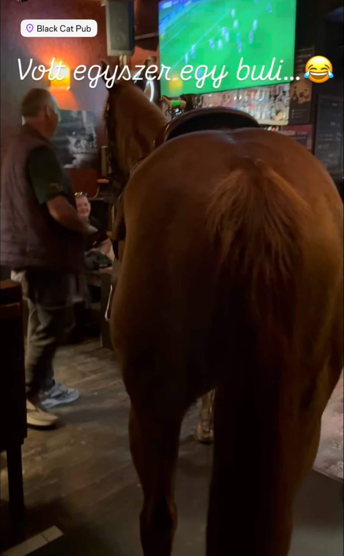 Egy háromfős társaság, két férfi és egy nő tért be egy kecskeméti belvárosi pubba április 30-án késő este, nem hétköznapi módon. Az italozni vágyók ugyanis lóháton érkeztek és egyikül be is vitte magával az italozóba a paripát a vendégek nem kis meglepetésére.