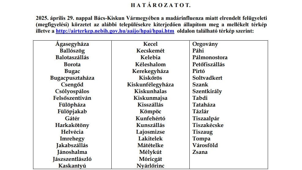 A védő- és megfigyelési körzetek határozatai IDE kattintva elérhetőek el.