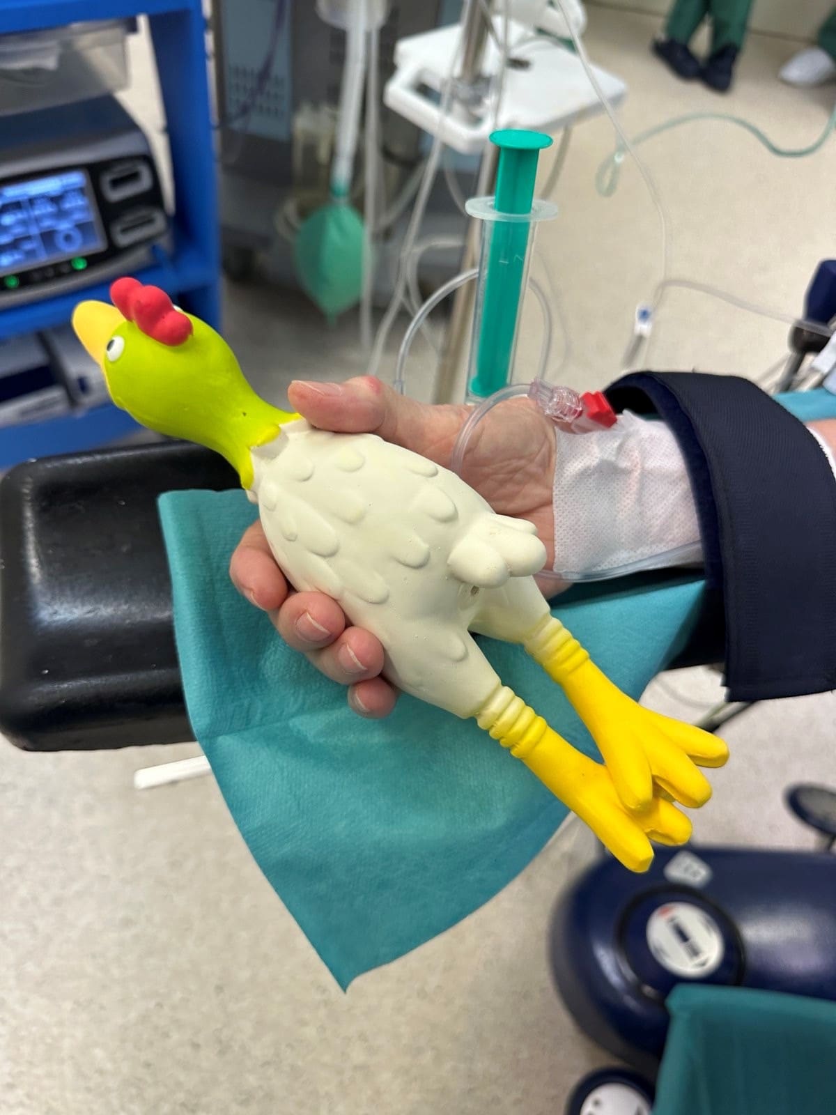 A műtét során a beteg végig éber állapotban marad, ami lehetővé teszi az agyi funkciók folyamatos, valós idejű monitorozását. A beteggel folyamatos kommunikáció zajlik, beszéltetik, különböző feladatok végrehajtására szólítják fel, például a kezében lévő tárgyat - jelen esetben gumikakast – szorítsa meg, ami kiemelten fontos, mivel a műtét az agyat ellátó nyaki verőéren történik, ahol már minimális keringési változás is neurológiai tüneteket okozhat.