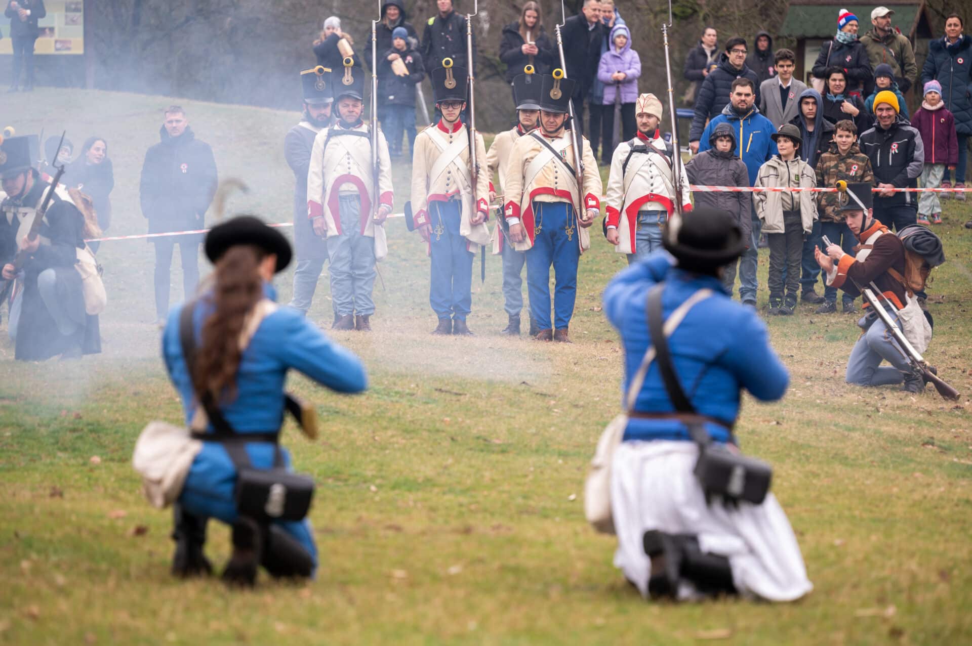 Az ünnepi beszédek után következett a nap legjobban várt eseménye, az „Élő történelem”, ezúttal három honvéd hagyományőr egyesület puskaropogástól és ágyúdörgéstől hangos látványos bemutatója, amelyre hideg nyirkos idő ellenére is sokan voltak kíváncsiak. Az élethű ütközetet és korhű csatajeleneteket Szkenderovics Zoltán kommentálta a közönség számára.