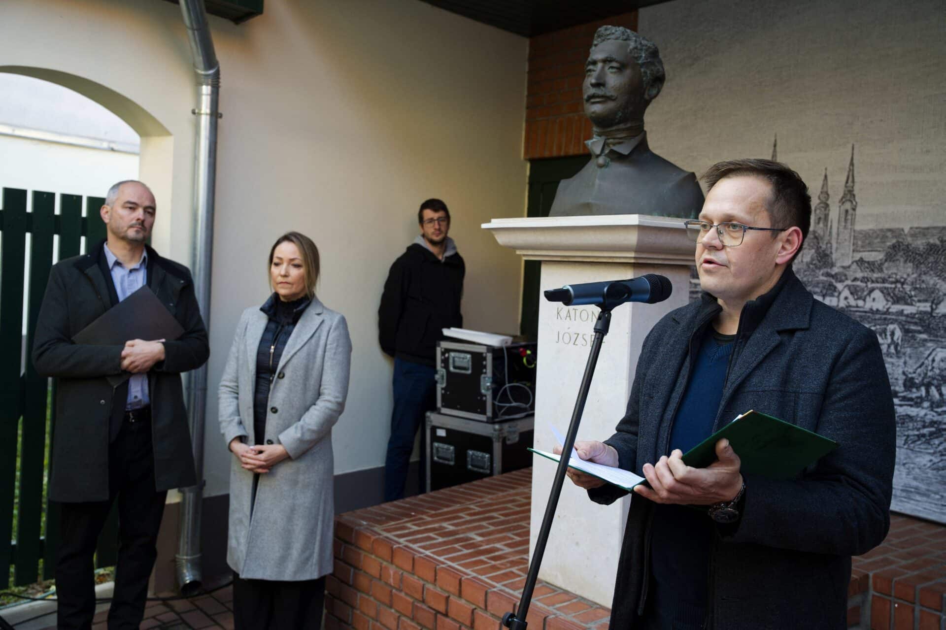 Hajagos Csaba történész, főmuzeológus beszédében hangsúlyozta Katona Kecskeméthez fűződő mélységes hűségét és ragaszkodását, rámutatott jellemének legalapvetőbb vonásaira. A Bánk bán jelentőségét Szerb Antal szavaival idézte meg: