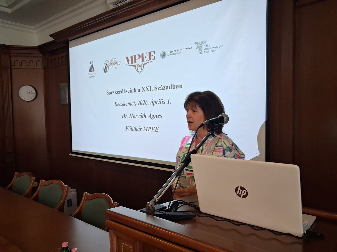 Sorskérdéseink című programot a Magyar Polgári Együttműködés Egyesület elnöke, Horváth Ágnes főtitkár mutatta be a hallgatóság előtt. Az anyag a polgári-keresztény értékrend alapján vizsgálja korunk legfontosabb társadalmi és erkölcsi kérdéseit. Célja, hogy strukturált szakmai párbeszédet indítson azokról a témákról – többek között a digitális világ kihívásairól is –, amelyek hosszú távon meghatározzák nemzetünk jövőjét és a következő generációk boldogulását. Mint mondta, hat munkacsoport elemezte a mindennapi lét különböző területeit. Tíz-tíz neves szakember járt körül egy-egy kérdéskört. Így megvizsgálták például az Emberi méltóság és az élet tematikáját. Egy másik csoport a Szellemi és az állami szuverenitás kérdéskörét járta körül. Egy harmadik a Közéleti kultúra a mindennapokban címmel vizsgálódott. Mások a Migráció, a népesedéspolitika, generációk együttélése tematikát kutatták. Elemezték a munkacsoportok a digitális világ kihívásait és a nemzetek jövőnek kérdéseit a globalizálódó világban. A főtitkár után dr. Borók György szakértő a digitális világ változásainak a kérdéskörét tekintette át.