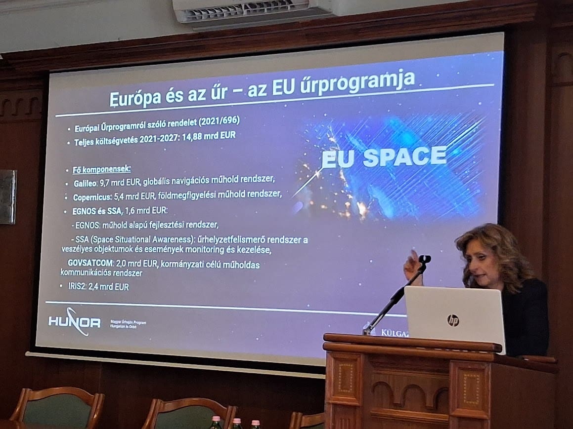 Majd a magyar űrkutatás aktuális helyzetéről dr. Ferencz Orsolya miniszteri biztos adott elemzést. Mint fogalmazott, aki ellenőrzi a műholdak segítségével az úgynevezett közeli földkörüli pályát, az ellenőrzi a bolygónkat magát. Jelenleg a Föld körül keringő és működő műholdak többsége az USA-hoz tartozik. Az összes műhold 70 százaléka Elon Musk amerikai milliárdosé. Magyarország az elmúlt 10 évben kapcsolódott erőteljesebben az űripari fejlesztések világához. Ennek is volt köszönhető, hogy tavaly egy magyar űrhajóst sikerült küldenünk a világűrbe, mondta dr. Ferencz Orsolya. A rendezvény az előadások után zártkörű beszélgetéssel folytatódott.