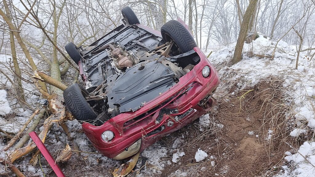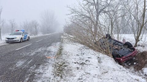 Egy pillanatnyi figyelmetlenség, egy jeges útszakasz – és már kész is volt a baj. A megcsúszó autó irányíthatatlanná vált, fát döntött ki, majd az árokban fejtetőre borulva állt meg Törtel közelében. A baleset brutalitása sokkoló.