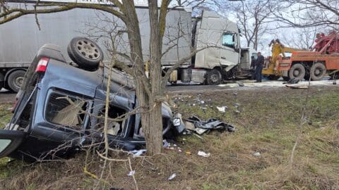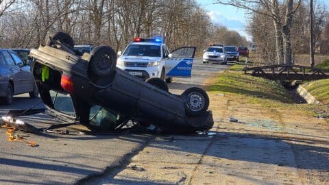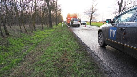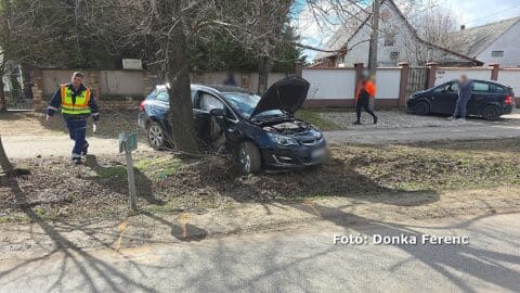 Megrázó baleset történt Kiskunmajsánál az 5411-es úton: egy autó eddig ismeretlen okból lesodródott az útról, majd több fának is nekiütközött.