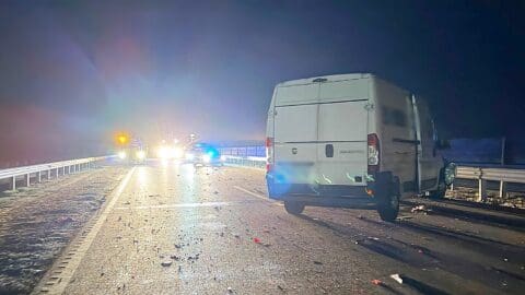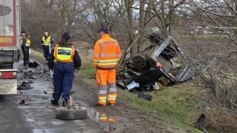 Baleset történt éjjel az M4-es autóút Szolnok felé vezető oldalán, a 70-es kilométernél, ahol két furgon és egy személykocsi hajtott egymásba.