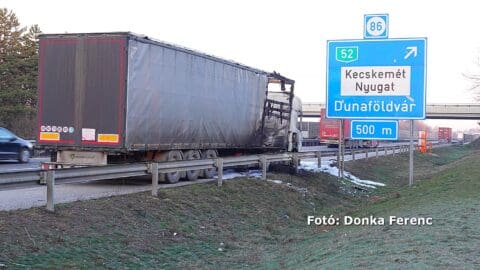 Kamion lángolt az M5-ön, Kecskemét közelében