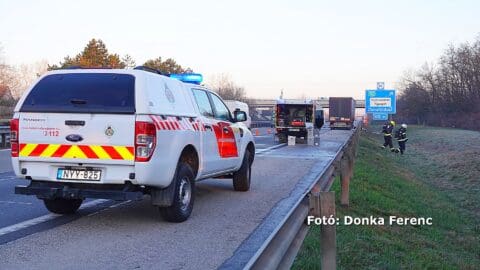Kigyulladt egy festék alapanyagot szállító kamion fülkéje az M5-ös autópályán, Kecskemétnél.