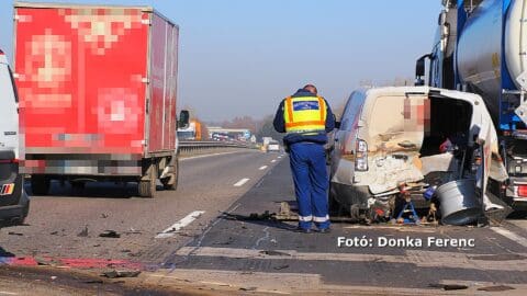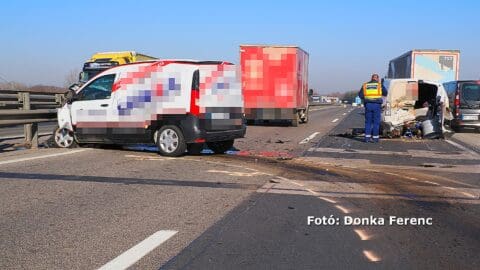 Ketten sérültek meg, amikor egy kisteherautó és két furgon ütközött össze az M5-ös autópályán Kecskemét közelében.