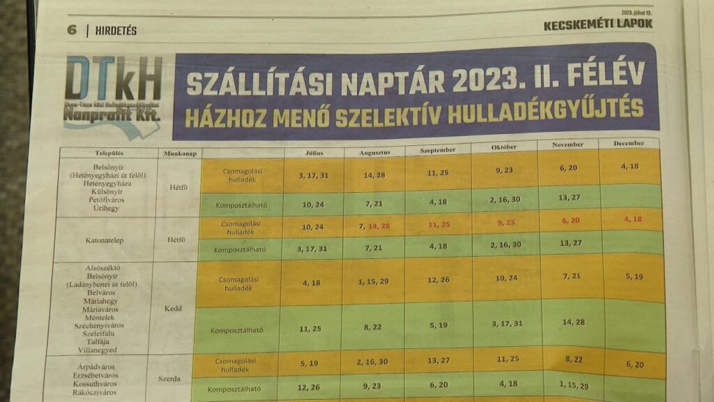 Szállítási naptár 2023. II. félév