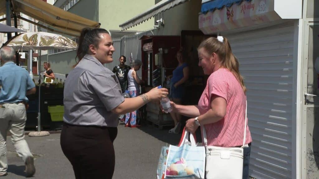 Vízosztás a buszmegállóban