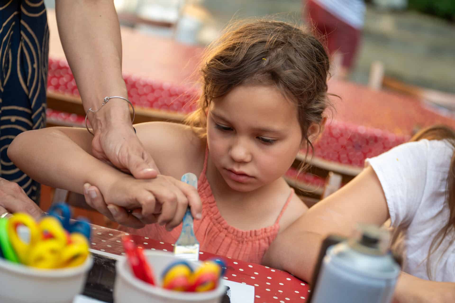 A gyerekeket Hájas Réka művésztanár várta, akivel a Jókai 200 jegyében két évszázaddal ezelőtti mintákat eleveníthettek fel egy kézműves foglalkozás keretében.