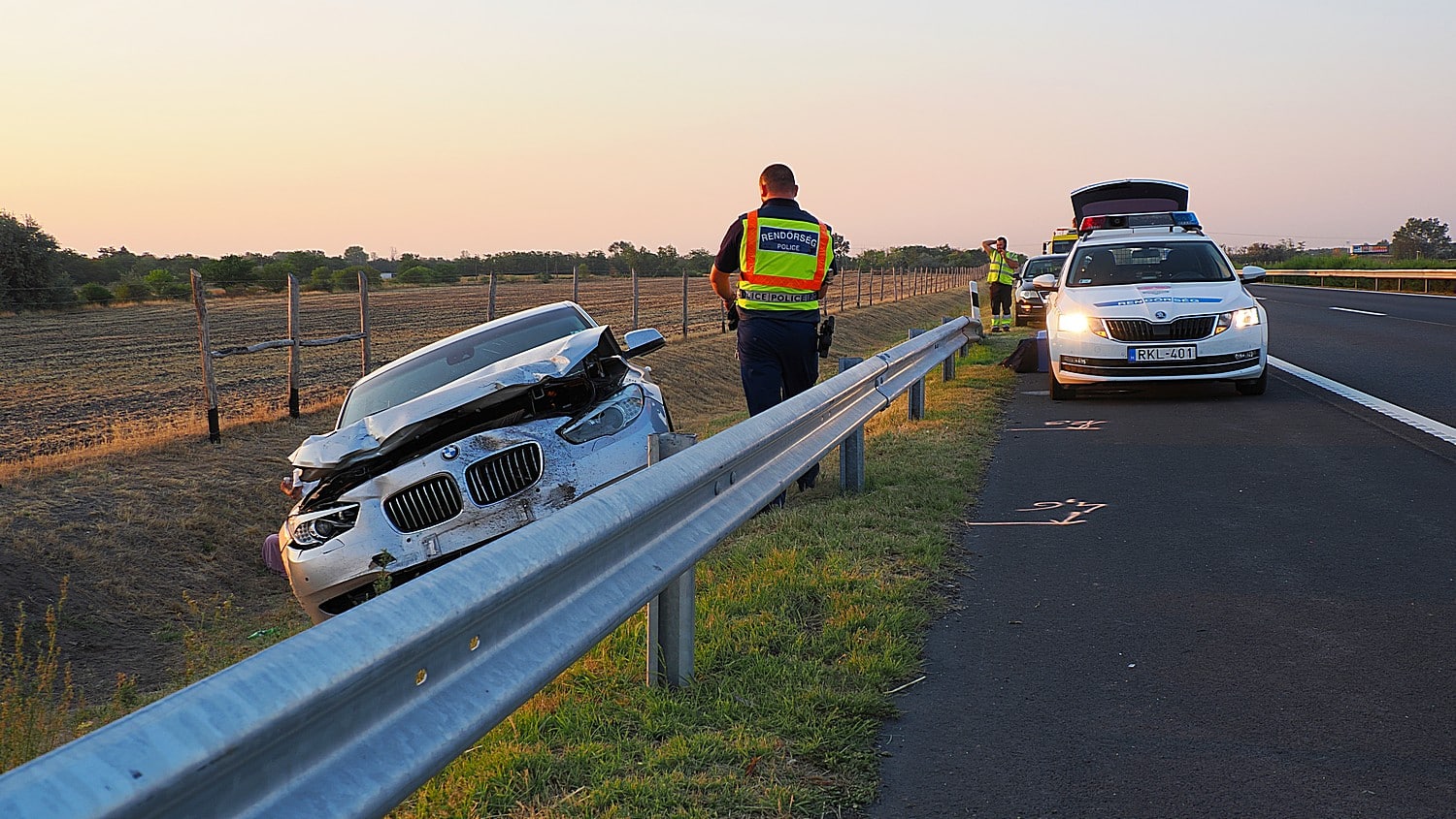 A BMW típusú személyautó pedig a szalagkorlátnak ütközött és az árok szélén állt meg. Úgy tudjuk, hogy benne ülő gyermeket és anyukát vitték kórházba, a helyszínen maradt az apuka, egy kiskorú gyermek, valamint egy kutya.A műszaki mentéshez a kiskunfélegyházi tűzoltók vonultak, akik áramtalanították a járműveket, a baleset miatt hatalmas volt a torlódás a főváros irányába.
