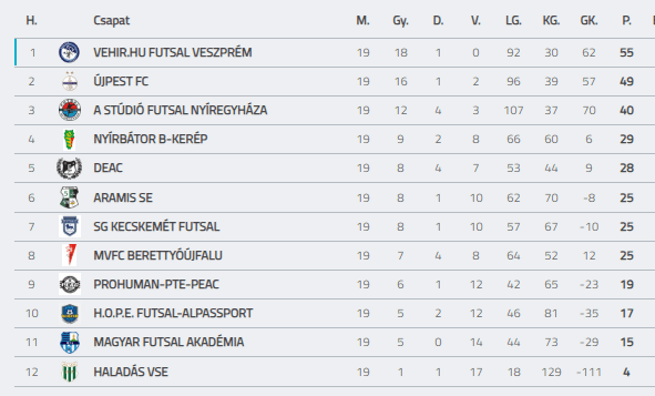férfi futsal NBI alapszakasz, 20. forduló