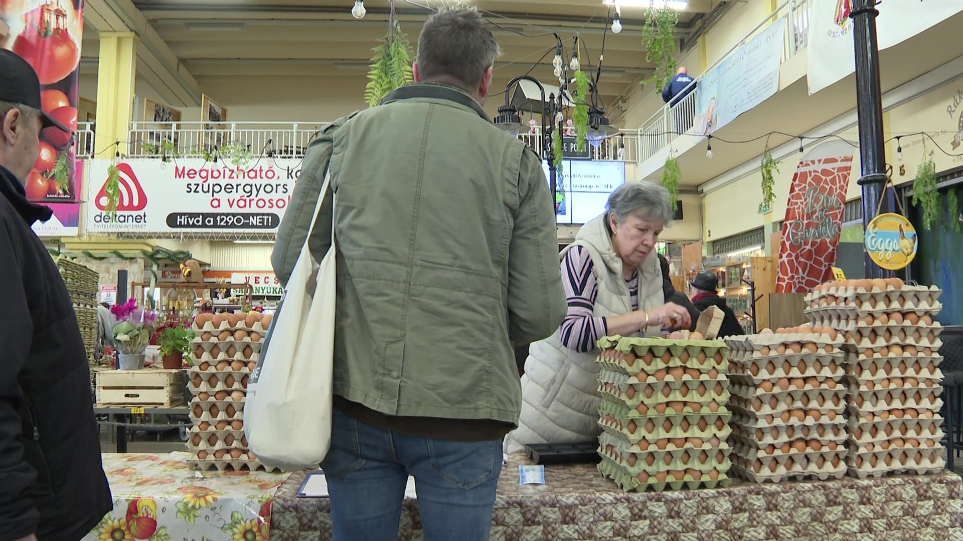 Az egyik vásárlót, Májer Ferencet kérdeztük arról, mit szokott vásárolni a piacon a húsvéti időszakban: "Elég sok mindent a darált hústól a rántott szeletig, a retektől a friss új hagymáig. Ez mind meg lett már véve, a tojás is, hát nagyjából ennyi – mondja el – meg most még megyek 3kg-os szép nagy kalácsért..."