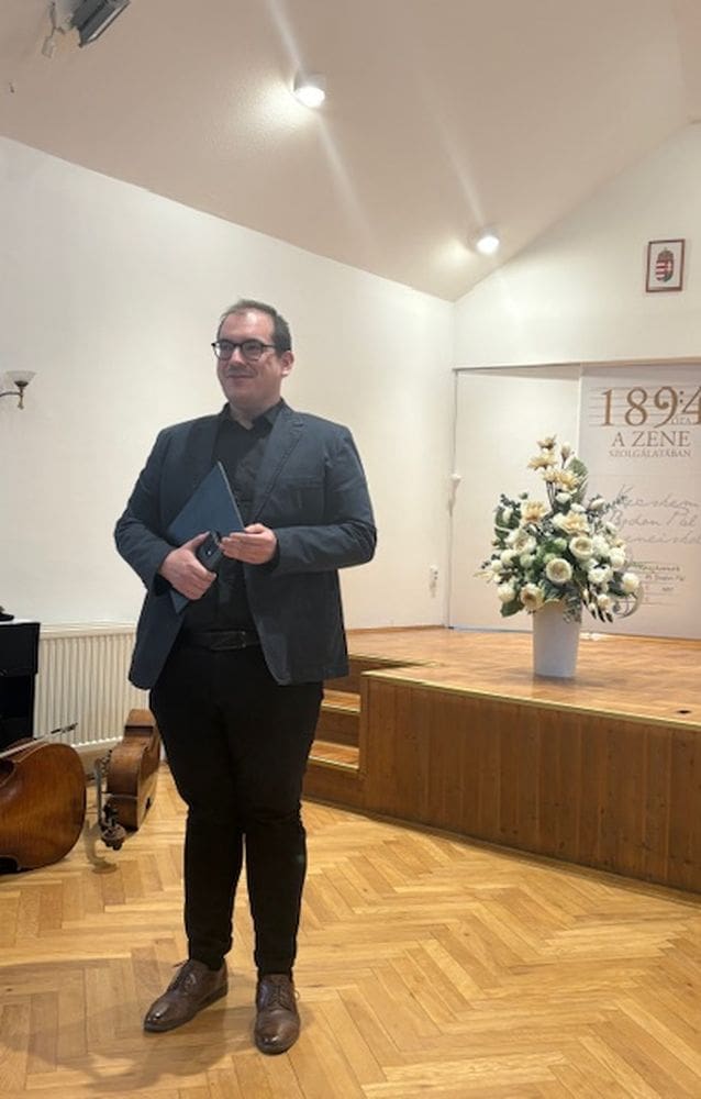 Ezt követően Virág Barnabás tagcsoportvezető összegezte az elmúlt három évben történteket. Beszámolóját köszönettel kezdte: „Három évvel ezelőtt, 2023 márciusában tartottunk legutóbb tisztújító közgyűlést, aminek eredményeként a tagcsoport vezetőségének tagjai Gerhát László, Jámbor Zsolt, dr. Kéri Laura Zita, Nemes Dóra és Virág Barnabás lettek. Különböző intézményekben dolgozunk, eltérő kapcsolati hálóval, tudással és tapasztalattal rendelkezünk – éppen ez tette lehetővé, hogy jól kiegészítsük egymást. Az elmúlt három évben mindannyian oroszlánrészt vállaltunk a programok megvalósításában, amiért nagyon hálás vagyok és ezen a ponton mondok köszönetet a kollégáknak. Programjaink számos intézmény támogatásával valósulhattak meg – köszönet illeti az M. Bodon Pál Alapfokú Művészeti Iskolát, a Kodály Iskolát, a Kodály Intézetet, a Kecskeméti Református Egyházközséget és a Katona József Könyvtárat.”