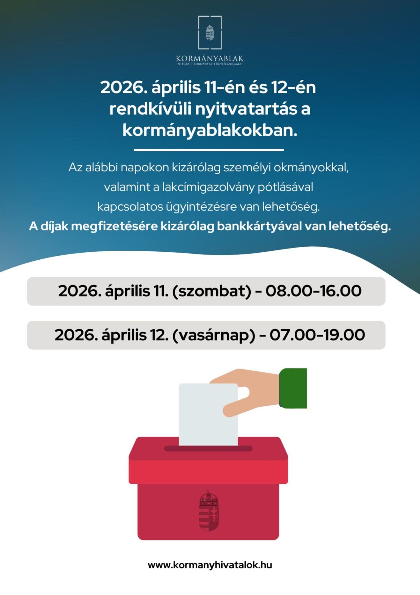 Rendkívüli nyitvatartás a választás hétvégéjén a kormányablakokban