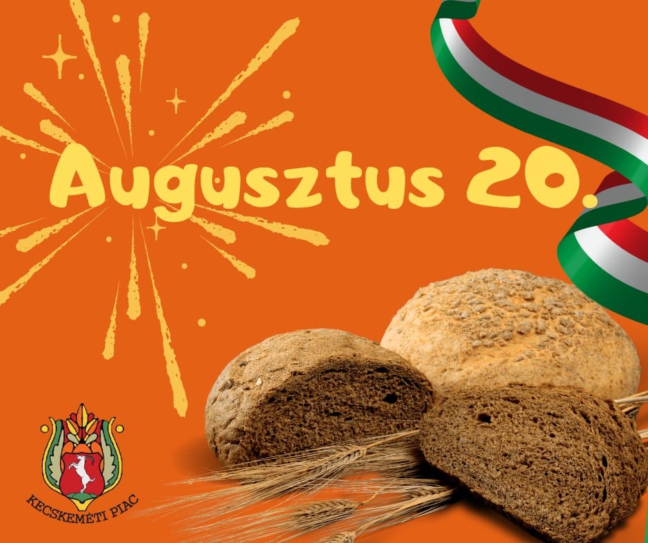 A Kecskeméti Piac értesíti a lakosságot, hogy nemzeti ünnepünkön, 2025. augusztus 20-án, szerdán, 5.30-12.00 óráig, a Budai utcai piac friss pékáru, tejtermék, savanyúság, virág, zöldség kínálattal, valamint kiváló vendéglátói üzletekkel várja a piacra kilátogató közönséget.