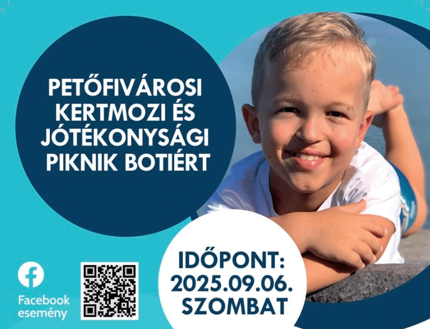 2025. szeptember 6-án, szombaton a kecskeméti Petőfi Parkban különleges közösségi eseményre várják az érdeklődőket: a Petőfivárosi Kertmozi és Jótékonysági Piknik Botiért programon a szórakozás mellett egy nemes cél kerül a középpontba. A rendezvény célja a 9 éves kecskeméti gyermek, Danyi Boti támogatása.