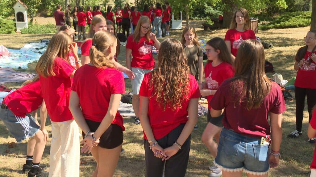 Gólyanapot tartott ma a Piarista Gimnázium a Kecskeméti Arborétumban. Ez alkalommal 99, 9. évfolyamos diák ismerkedett egymással. A napot közös misével kezdték, és akadályversennyel fejezték be.