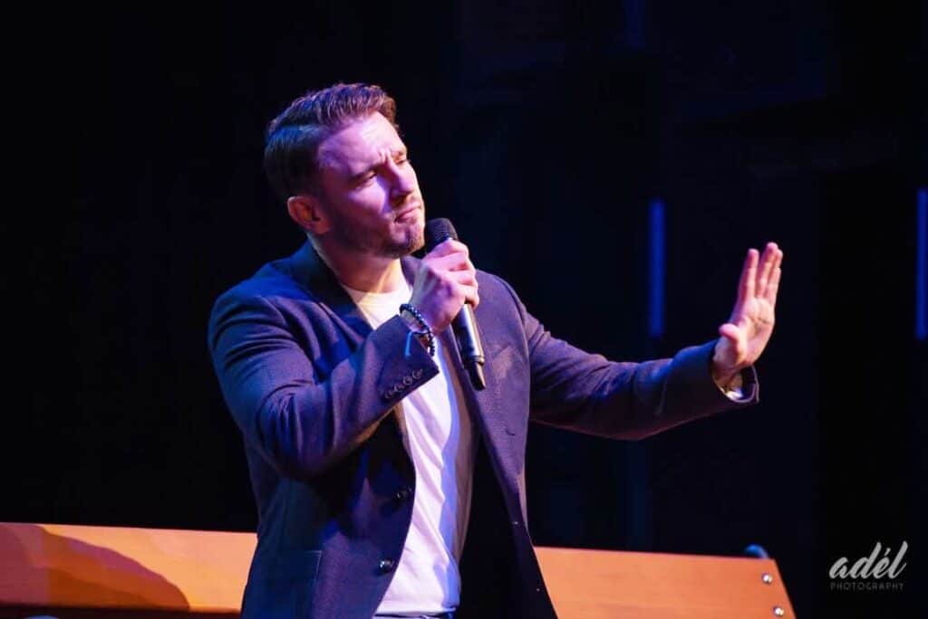 Sándor Péter a Budapesti Operettszínház vezető színművésze, aki a Csináljuk a fesztivált! című műsor két évadában is nagy sikert aratott a Fényév távolság és a Gyertyák című dallal. Péter neve mára országszerte ismert a színház- és zenekedvelő közönség körében, de számára Kecskemét mindig is több volt egy városnévnél. Itt nőtt fel, itt ébredt rá arra, hogy a színpad az õ világa, és itt lépett először színpadra 18 évesen. Ezért is bír különös jelentőséggel számára, hogy "Úton" című, saját maga által írt, zenés önéletrajzi előadását első vidéki helyszínként Kecskemétre hozhatja el a 40. Kecskeméti Tavaszi Fesztivál keretében.