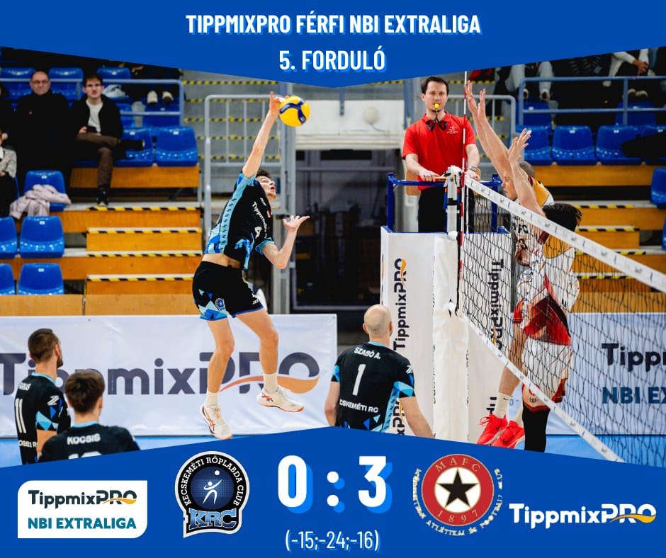 Közel járt a KRC a szettgyőzelemhez, de végül 0-3-ra nyert a MAFC a TippmixPRO Férfi NBI Extraliga alapszakaszának 5. fordulójában.