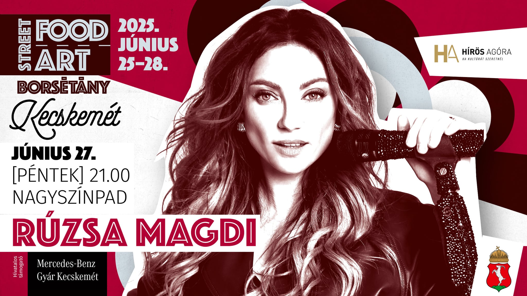 "Egy igazi magyar ikon ad koncertet június 27-én, pénteken a Street Food Street Art Borsétány nagyszínpadán! Rúzsa Magdi hangja, stílusa, energiája garantáltan felejthetetlen élményt ígér!" - írta Facebook odalán a Hírös Agóra. A további programokból egyelőre csak azt árulták el, hogy a streetfoodok, a borsétány, a Top DJ-k fellépései mellett lesznek improvizációs látványprodukciók, és természetesen sok-sok gyermek és családi programmal is készülnek.