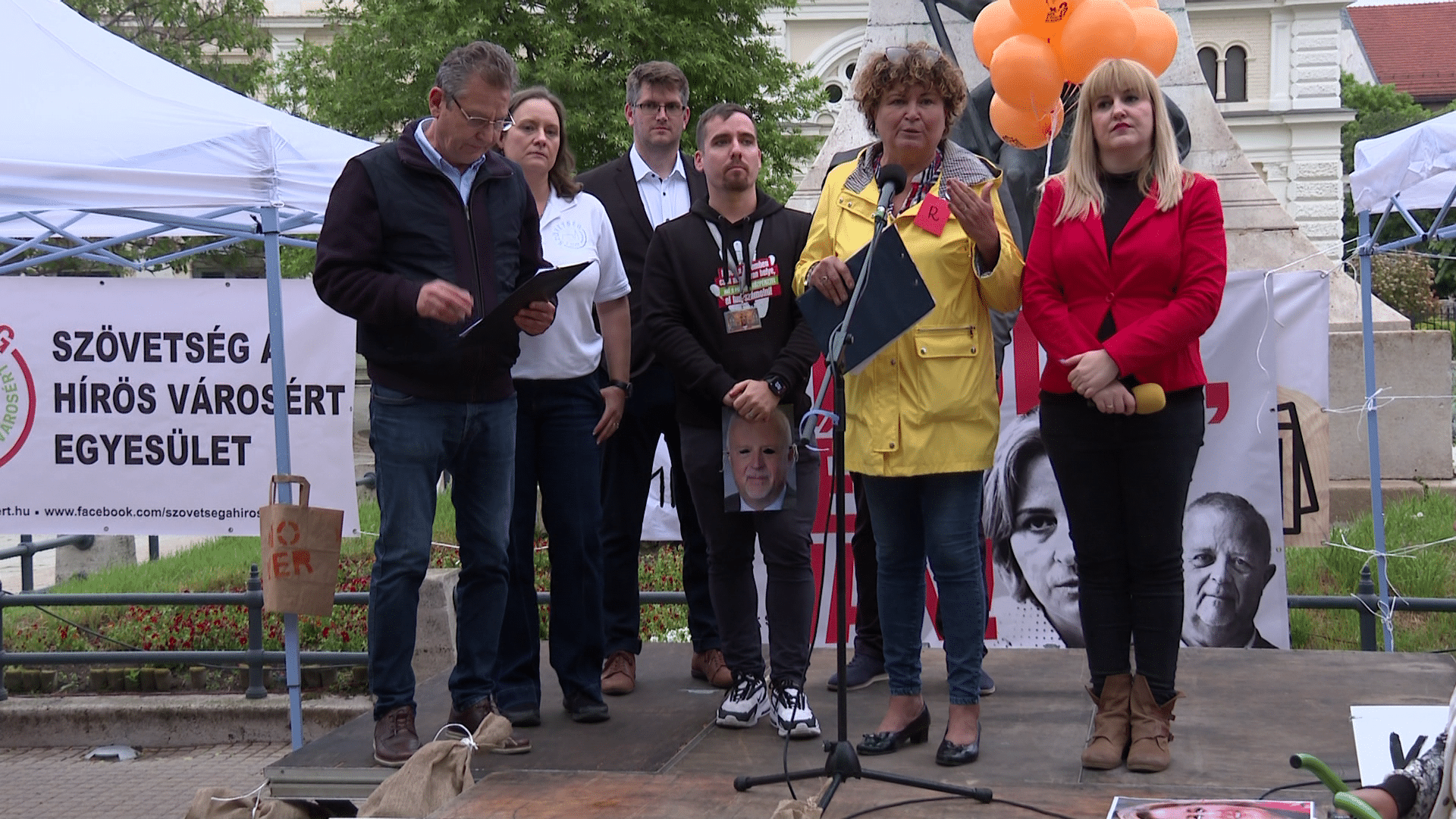 Először nem derült ki egyértelműen, mi ellen is tüntet a baloldal. Ugyanis már a legelején a háziasszony, Kopping Rita, a Szövetség a Hírös Városért Egyesület elnöke a sajtót és személyemet kezdte szidni.