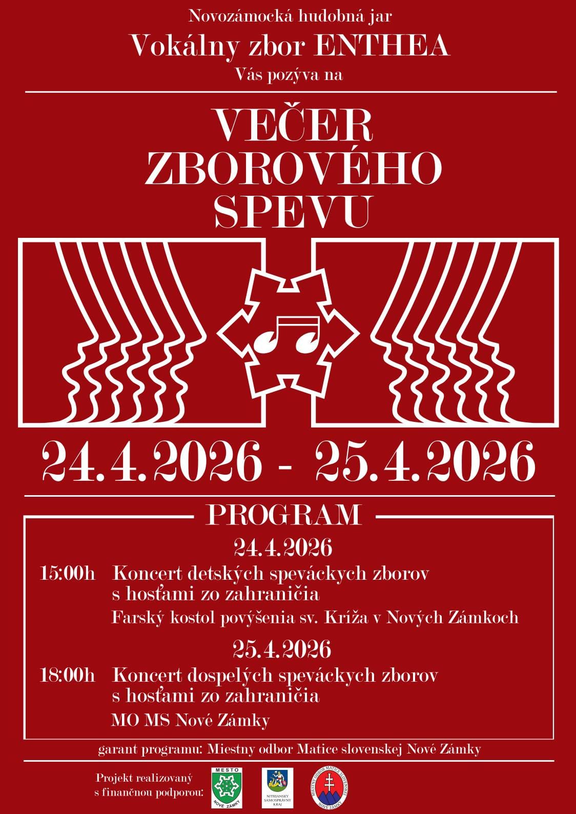 Az Érsekújvári Zenei Tavasz keretében április 24-én és 25-én egy szintén nagy hagyományokkal rendelkező kórusfesztivált is rendeztek. A Večer sboroveho spevo címmel meghirdetett programsorozatot a Nyitra partján fekvő város közösségi oldalán így népszerűsítették: „A Kórusok estje hosszú évek óta fontos része Érsekújvár kulturális életének. Néhány év kihagyás után 2023-ban az ENTHEA kórus élesztette újjá ezt a hagyományt, és azóta is lelkesedéssel dolgozik a régió kóruskultúrájának fejlesztésén. A fesztivál évről évre bővül, generációkat és országokat kapcsol össze, és különleges zenei élményeket kínál. Idén szlovákiai és magyarországi kórusokat lát vendégül, ismét bizonyítva, hogy a zene kortól és határoktól függetlenül köti össze az embereket.”