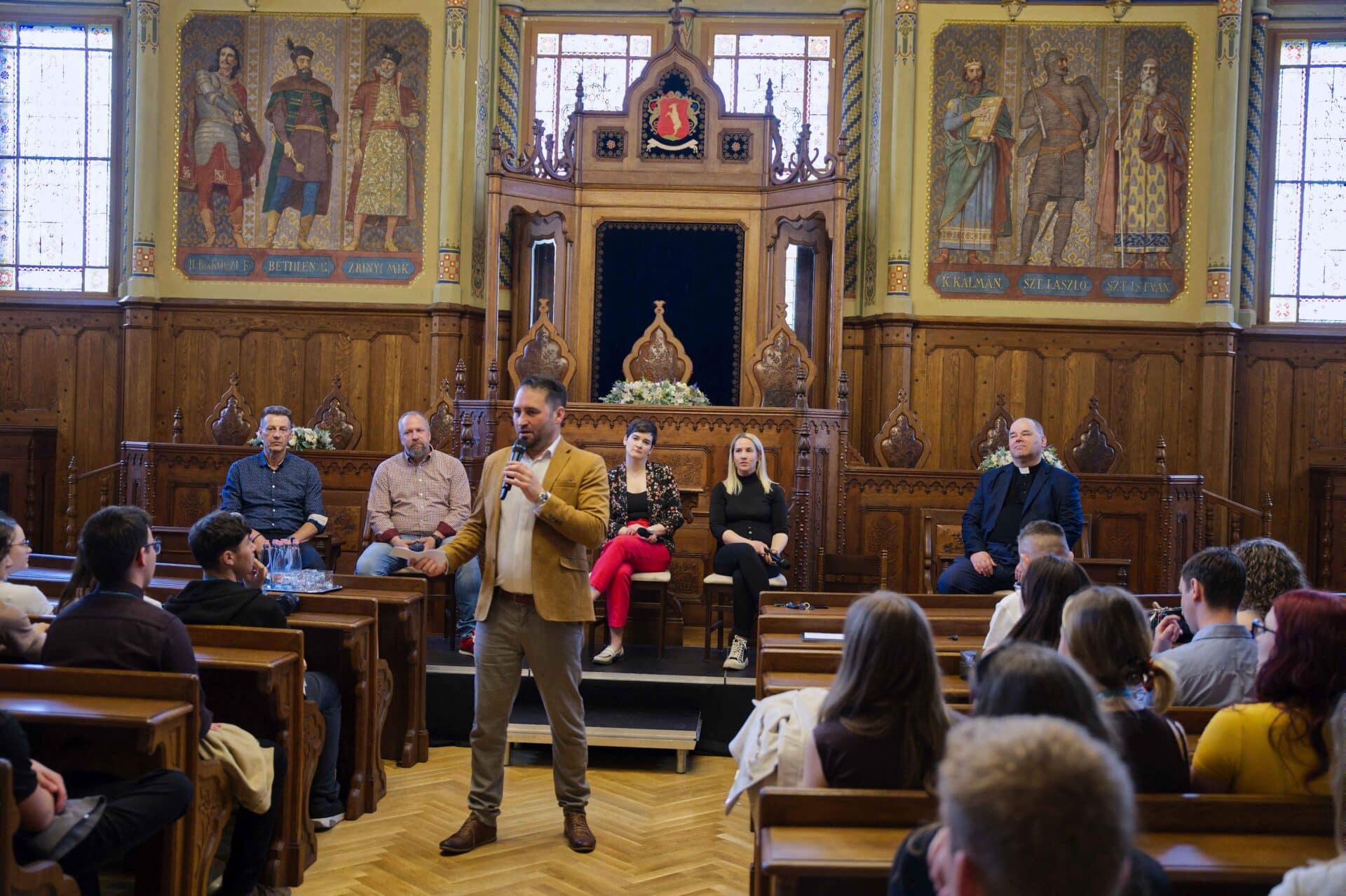 Árvai Zoltán, a Neumann János Egyetem kommunikációs vezetője, az est házigazdája a mesterséges intelligenciát hívta segítségül, a jelenlévő egyházak egy-egy cetlin kapták meg az AI által kidobott stigmatizáló, kritikus szavakat. Először erre reagáltak a szóvivők, akik nagyrészt a közönségnek dobták vissza a kérdést.