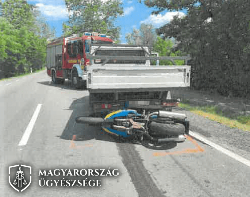 A motoros a baleset következtében többszörös csonttörést szenvedett, amely 6 hónap alatt, maradandó fogyatékossággal gyógyult. A baleset azért következett be, mert a teherautó-sofőr megszegte azt a közlekedési szabályt, miszerint a jelzőtáblával ellátott útkereszteződésben elsőbbséget kell adni a védett úton haladó járműnek. Az ügyészség a sofőrt maradandó fogyatékosságot eredményező közúti baleset gondatlan okozásának vétségével vádolja és ezért vele szemben büntetővégzés hozatalára irányuló eljárásban – tárgyalás mellőzésével – pénzbüntetés kiszabását, továbbá a járművezetéstől eltiltását indítványozza. Ügyében a Kecskeméti Járásbíróság fog dönteni.