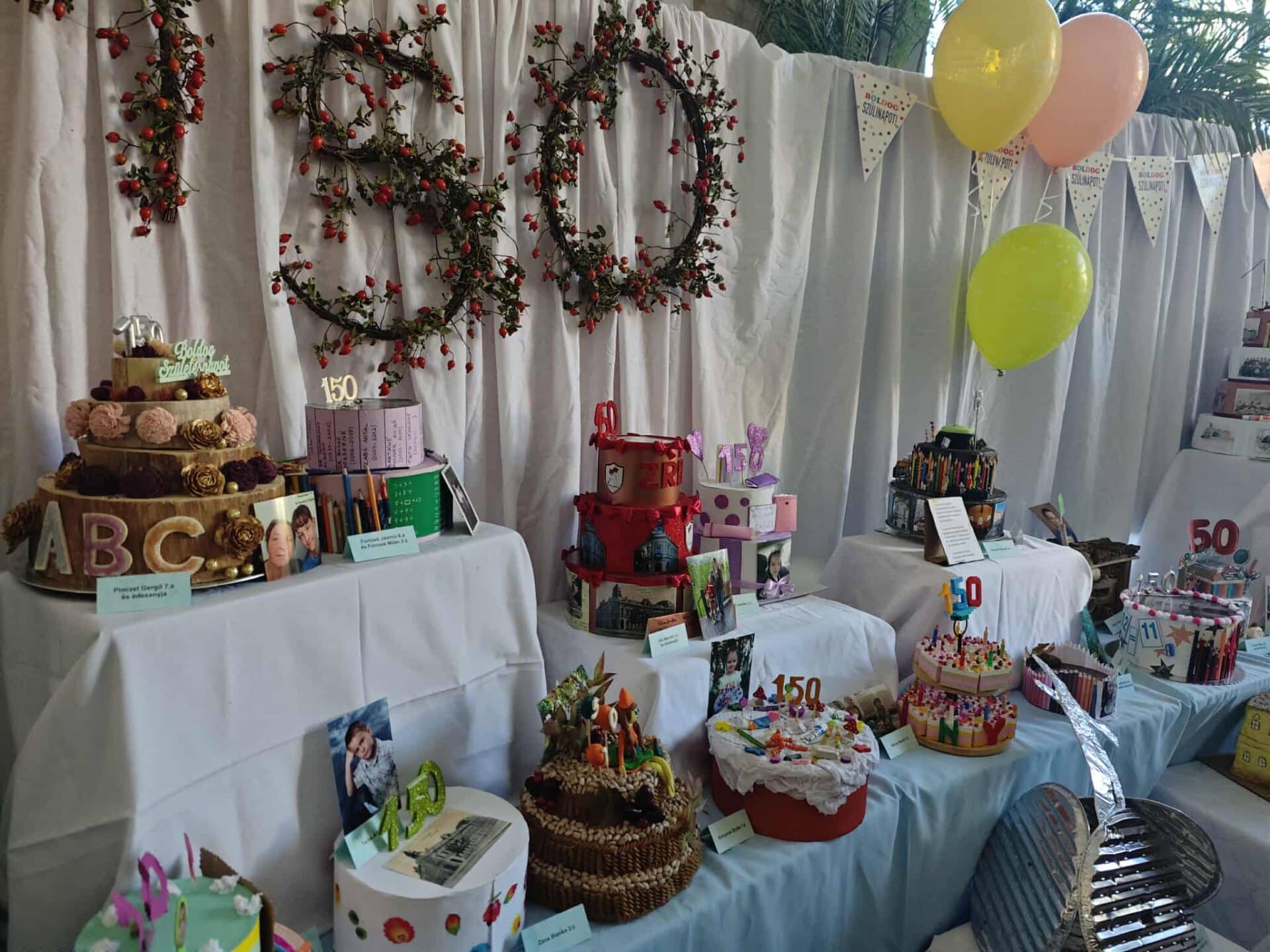 A sok-sok szebbnél szebb tortát a diákok fotóival együtt állították ki, és egészen november végéig lesznek láthatóak a jubileumi programsorozat