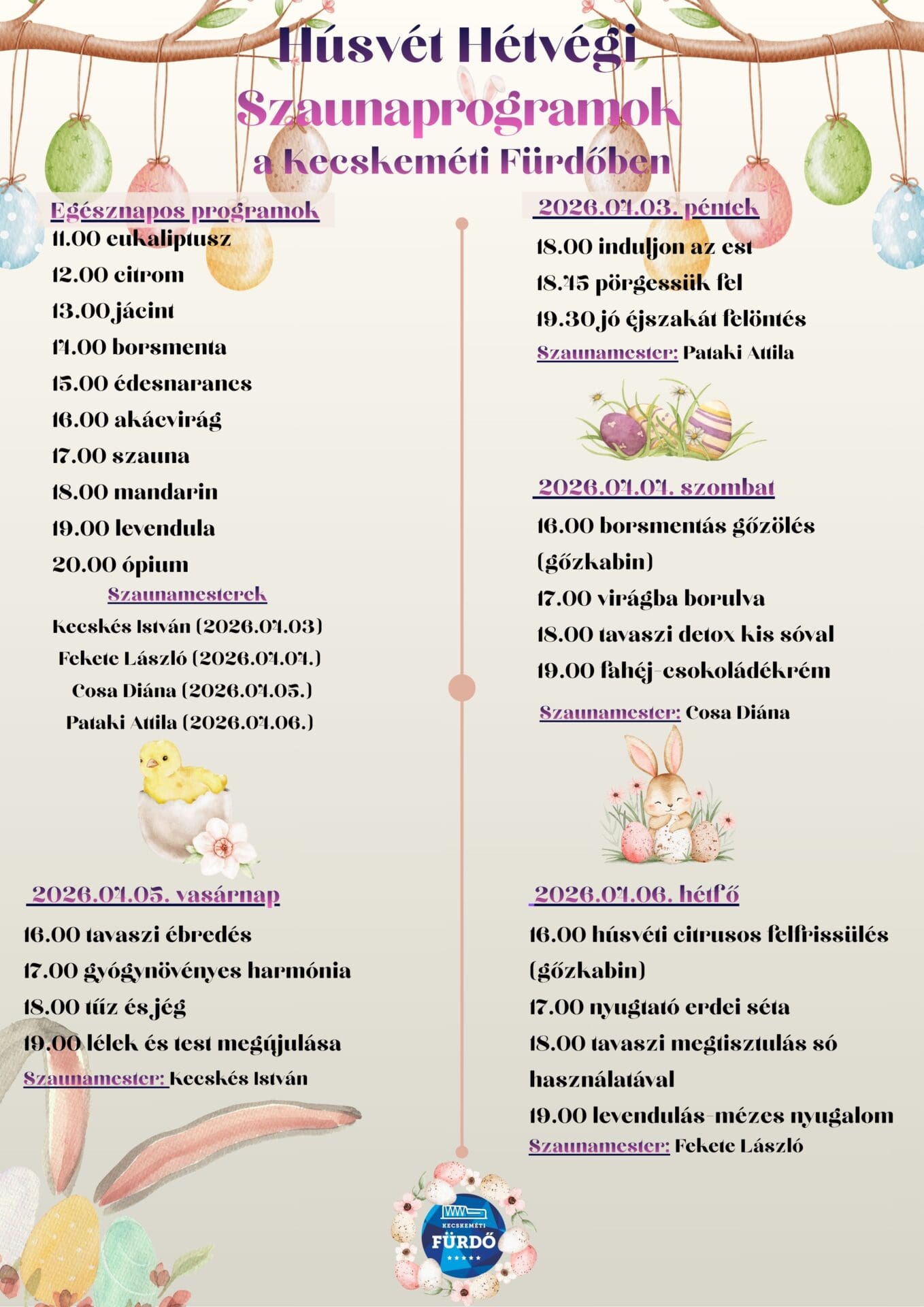 A Kecskeméti Fürdő a 2026-os húsvéti hétvégén különleges programokkal várja a kikapcsolódni vágyó vendégeket.