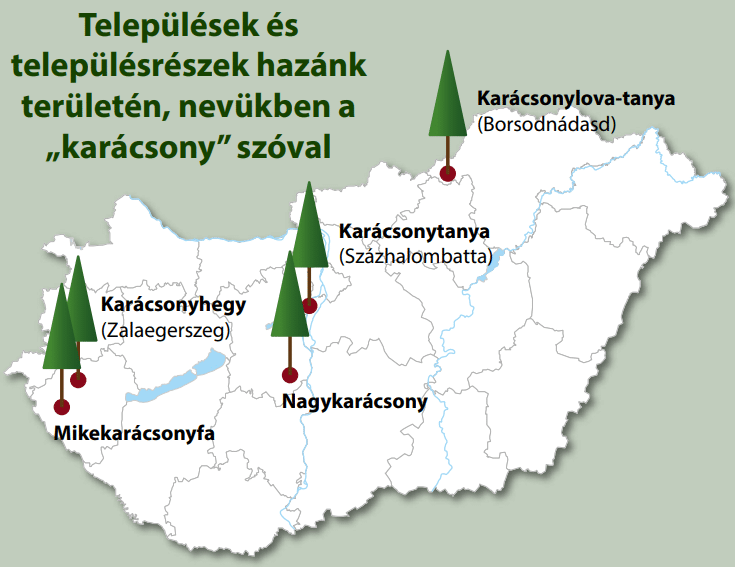 Számos helységnevünk utal a nemzeti identitásukra és a történelmünkre. Ezek közé tartoznak azok is, amelyek nevében ott a karácsony szó is. Idehaza két település a Fejér megyei Nagykarácsony és a zalai Mikekarácsony viseli az ünnepi elnevezést. Illetve három külterületi rész is az keresztény ünnep elnevezés tulajdonosa.