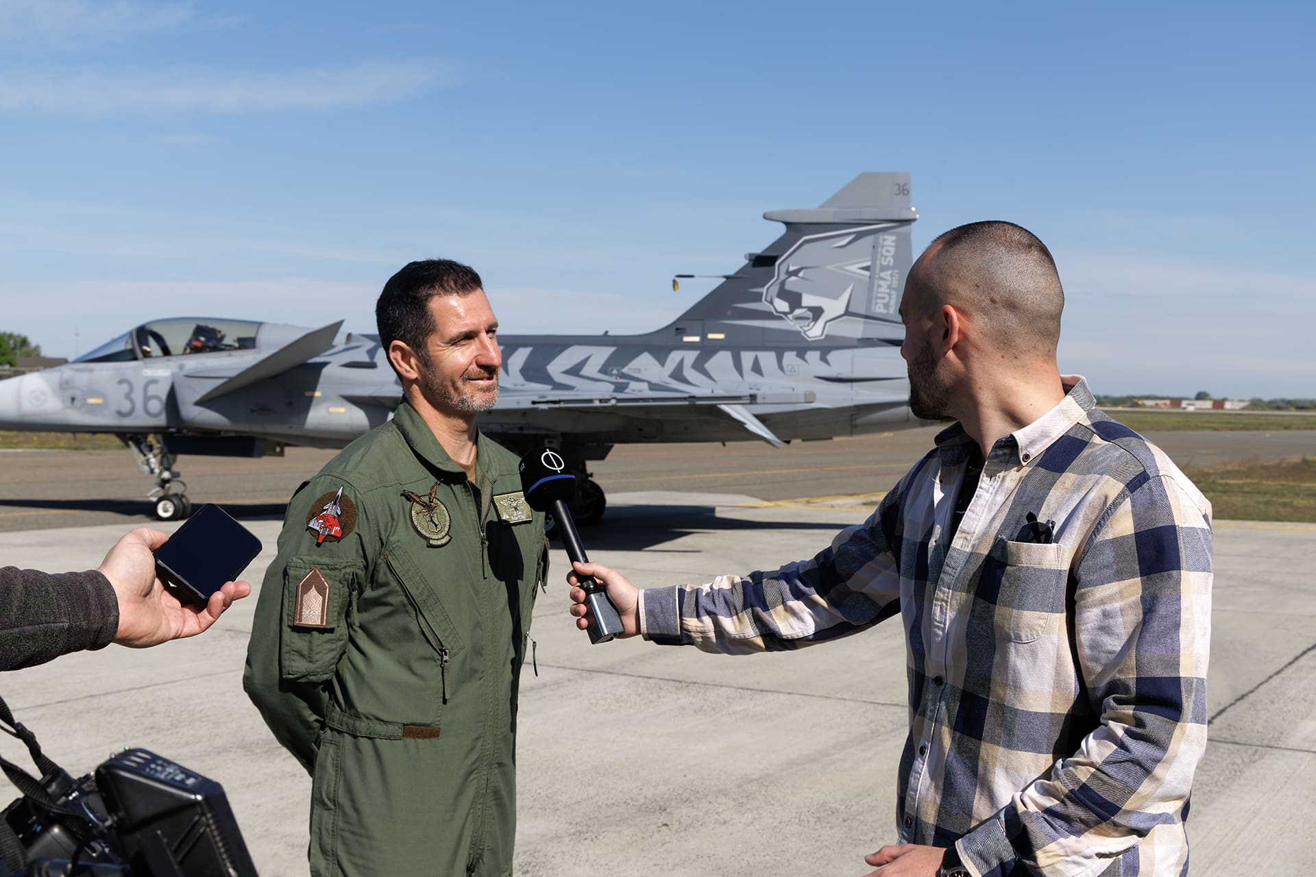 Lélegzetelállító látvány fogadta az MH vitéz Szentgyörgyi Dezső 101. harcászati repülődandár bázisára érkezőket, ahol bemutatták az új díszfestéssel ellátott JAS 39C-t vadászgépet.