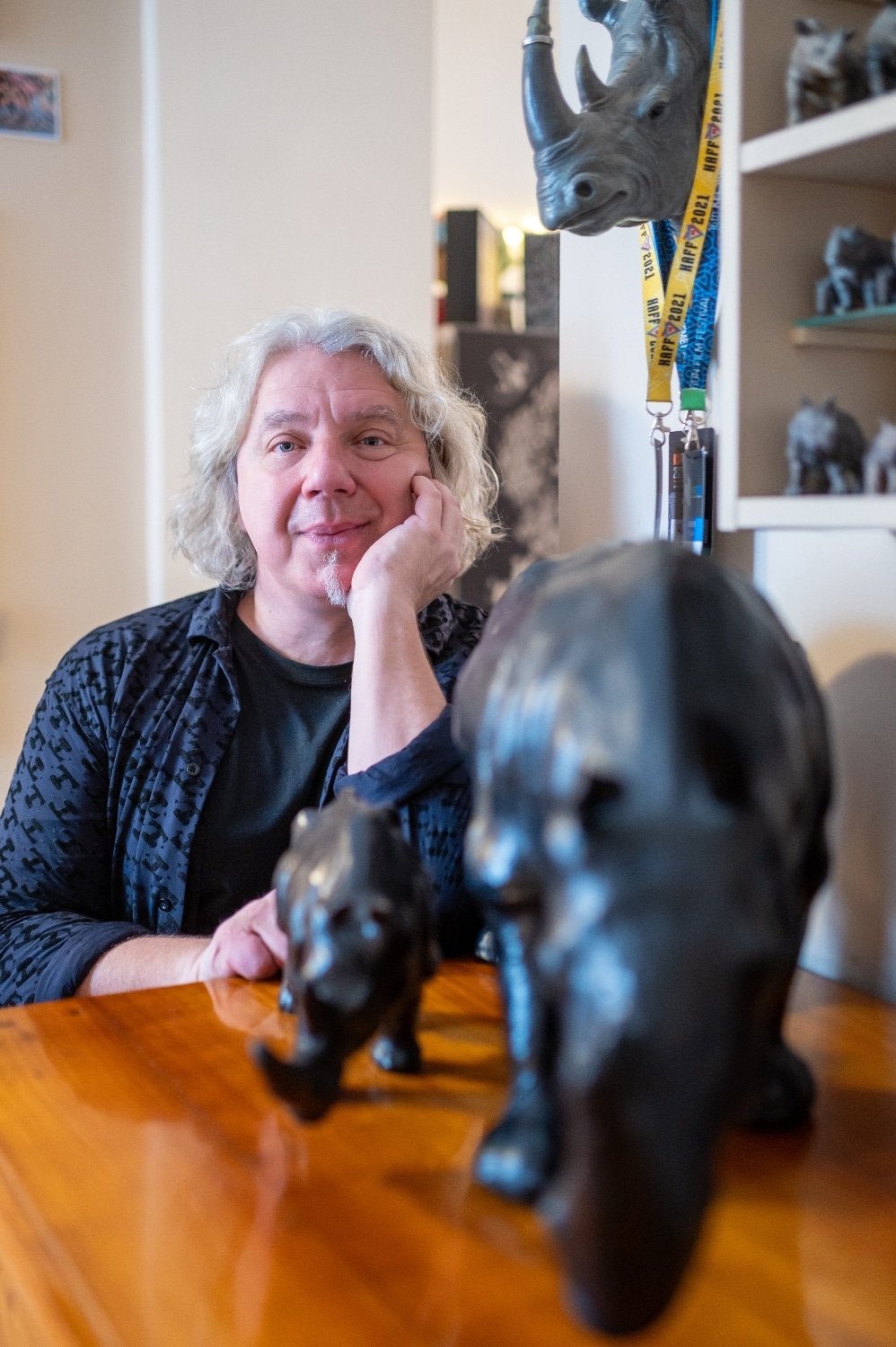 – Így a kép pontatlan, inkább misztikus, mint tökéletes. Jórészt a képzelet szülötte, amolyan középkori mém, mégis egyetlen állatábrázolás sem gyakorolt akkora hatást a művészekre, mint ez – magyarázza az íróasztalát díszítő reprót elemezve. – Középiskolásként én is lerajzoltam, és akkor elkezdtem gyűjtögetni a rino figurákat is. Nagy becsben tartottam őket, de aztán – úgy tűnt –, kinőttem a dolgot.