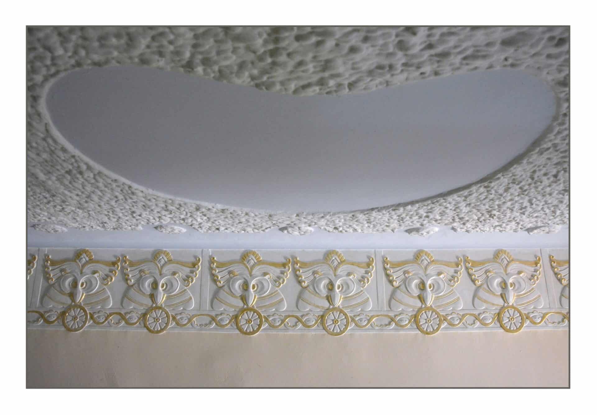 – Amikor először láttuk, borzasztóan nézett ki a ház, bele volt húzva a mennyezetbe egy fal, amivel ketté választották. Már itt laktunk a családdal, amikor felfedeztük az elfedett kincseket. A konyhánkat díszítő aranyfüstös díszítő frízeket egyszerűen lefestették, úgy nézett ki, mintha felázott volna. Kíváncsiságból fejtettem le a festéket, akkor derült ki, mi is van alatta – meséli.