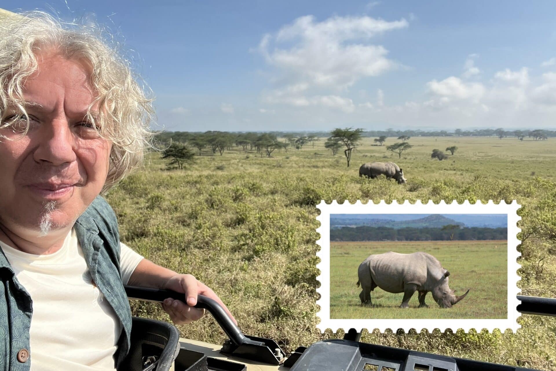 Megmutatja azokat a darabokat is, amelyeket személyesen szerzett be Afrikából 2024-ben. Kenyában pedig volt szerencséje találkozni élő orrszarvúakkal is.