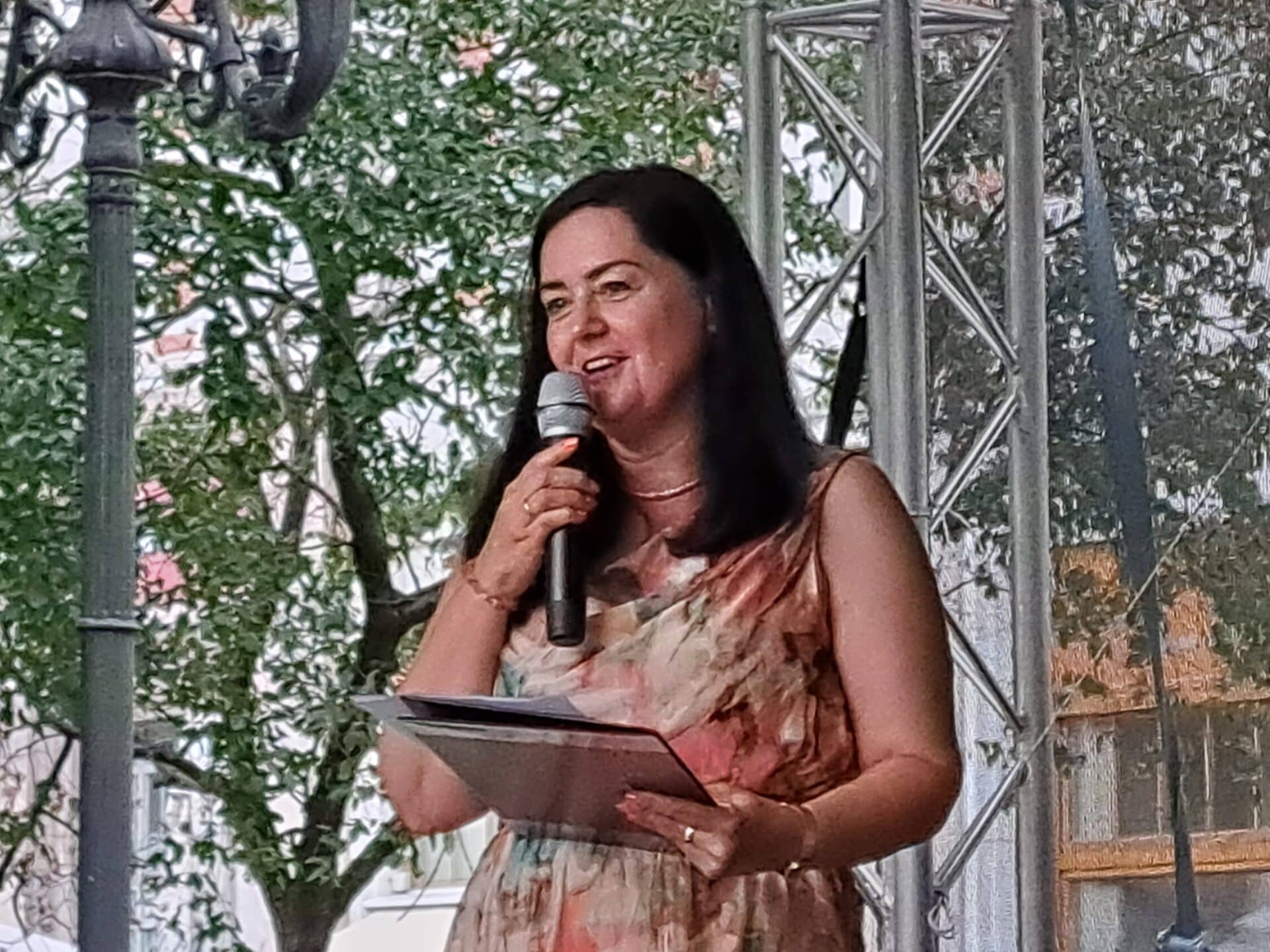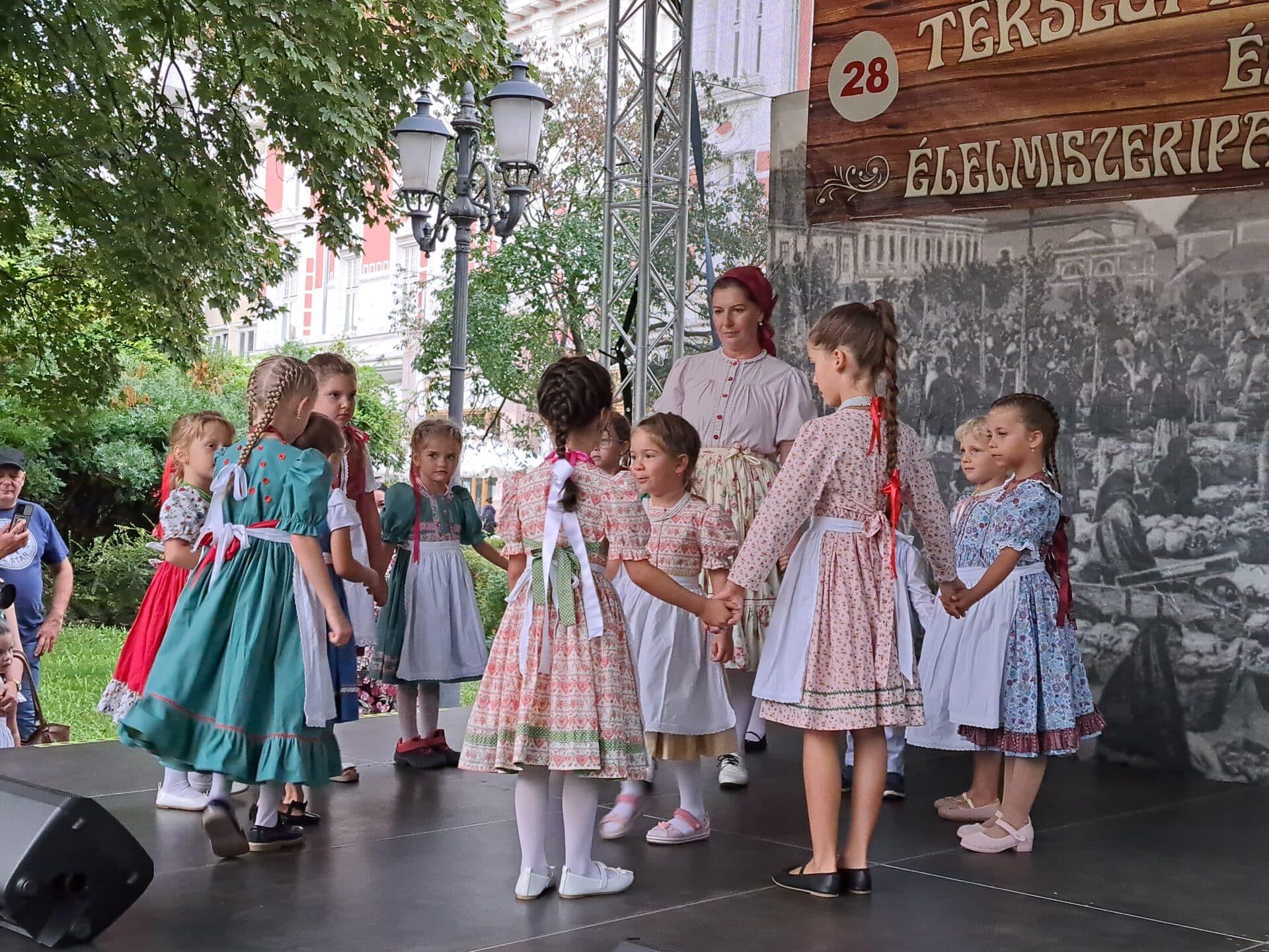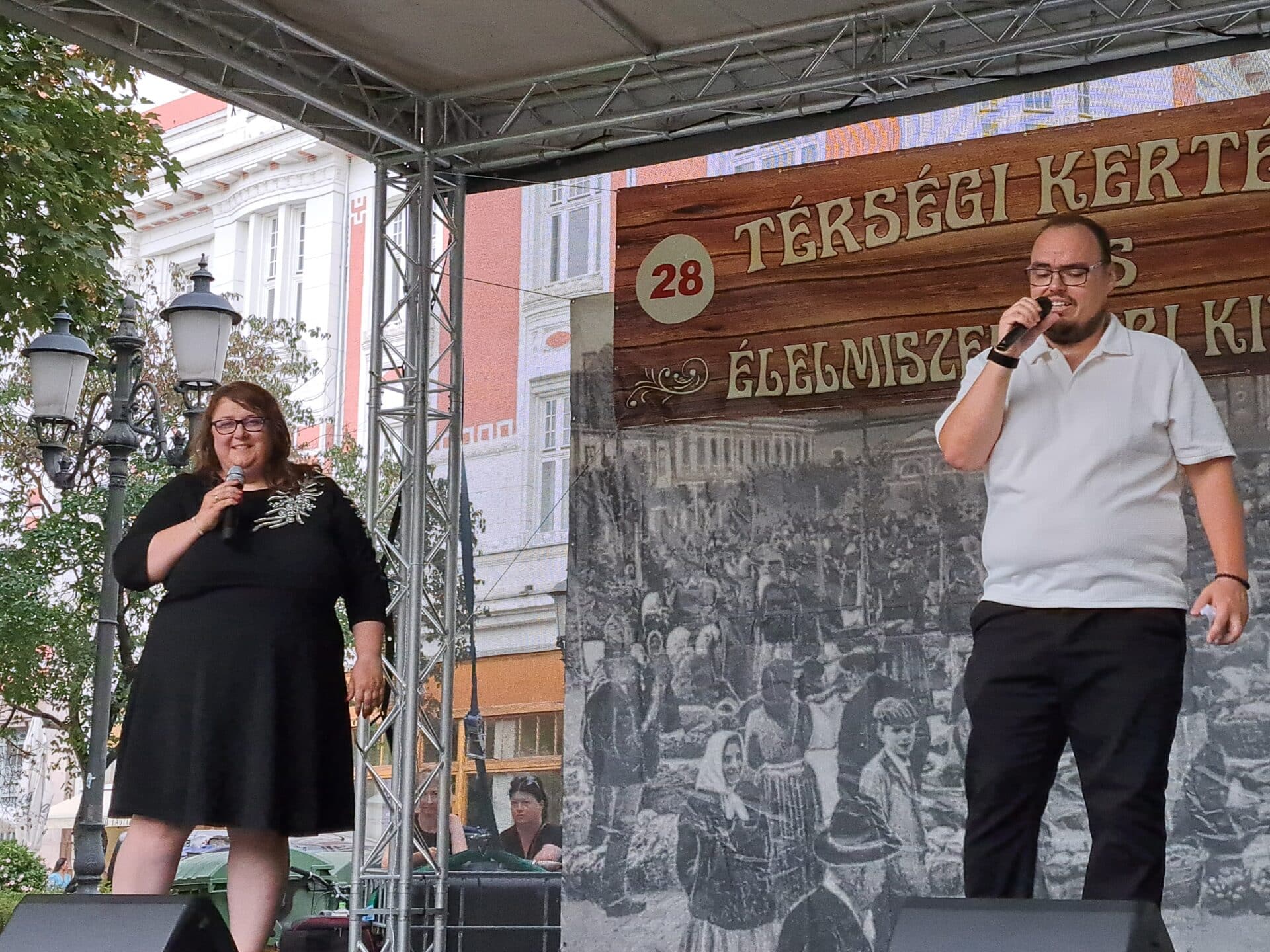 Polgármesteri köszöntők, kulturális bemutatkozások az „Aranyhomok Színpadon” a Hírös Forrás szökőkútnál