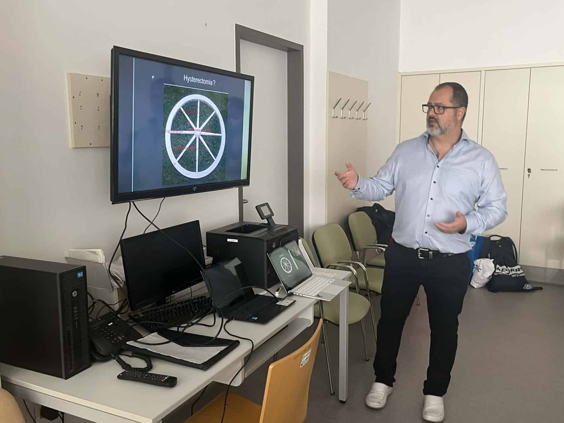 A program során a résztvevők betekintést nyerhettek a medencefenék-rekonstrukció, a laparoszkópos onkológiai műtétek, valamint a mélyen infiltráló endometriózis sebészeti ellátásának gyakorlatába. A nap rövid elméleti bevezetővel kezdődött, amely elsősorban a megoperálandó betegek bemutatására és az alkalmazott műtéti stratégiák áttekintésére fókuszált.