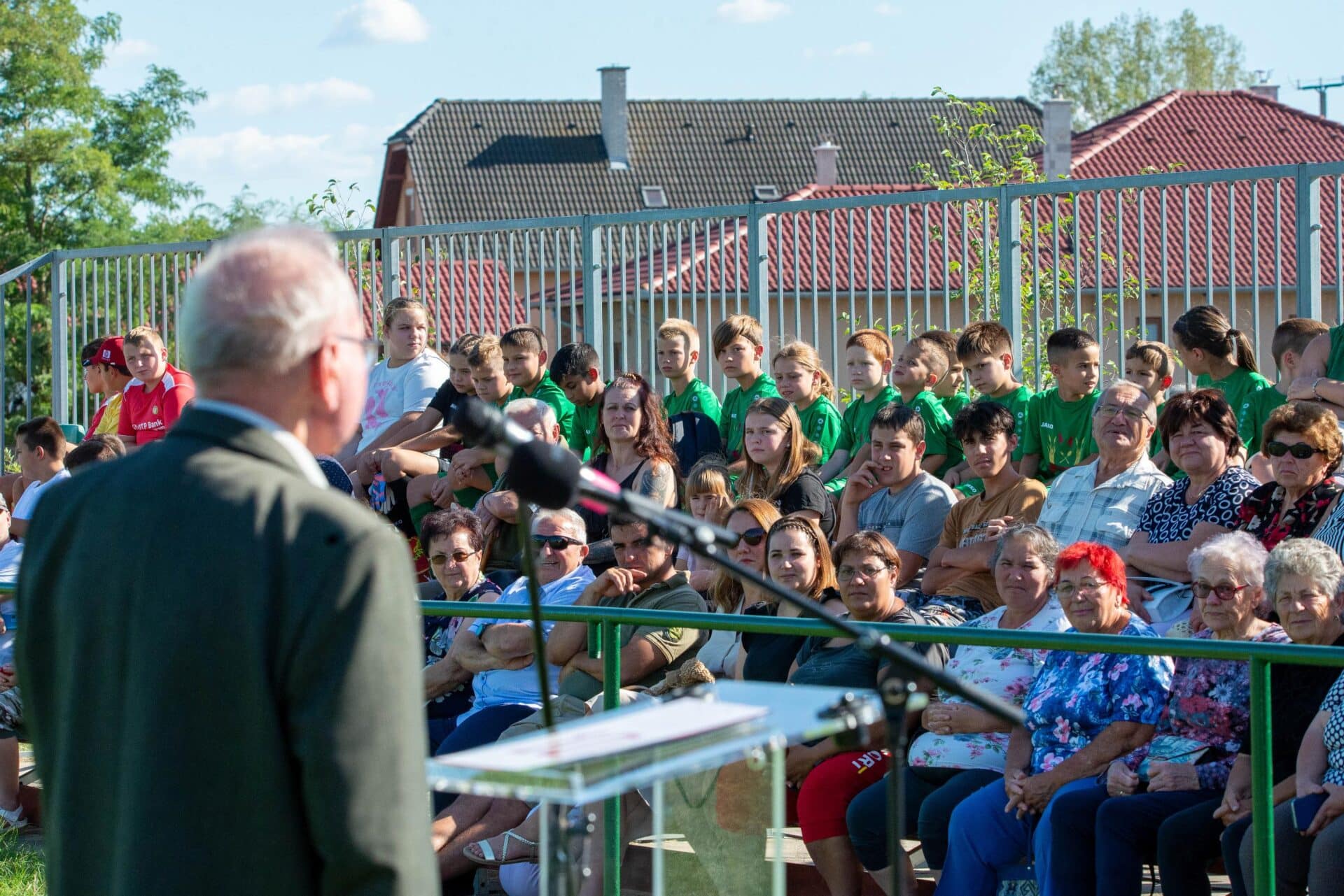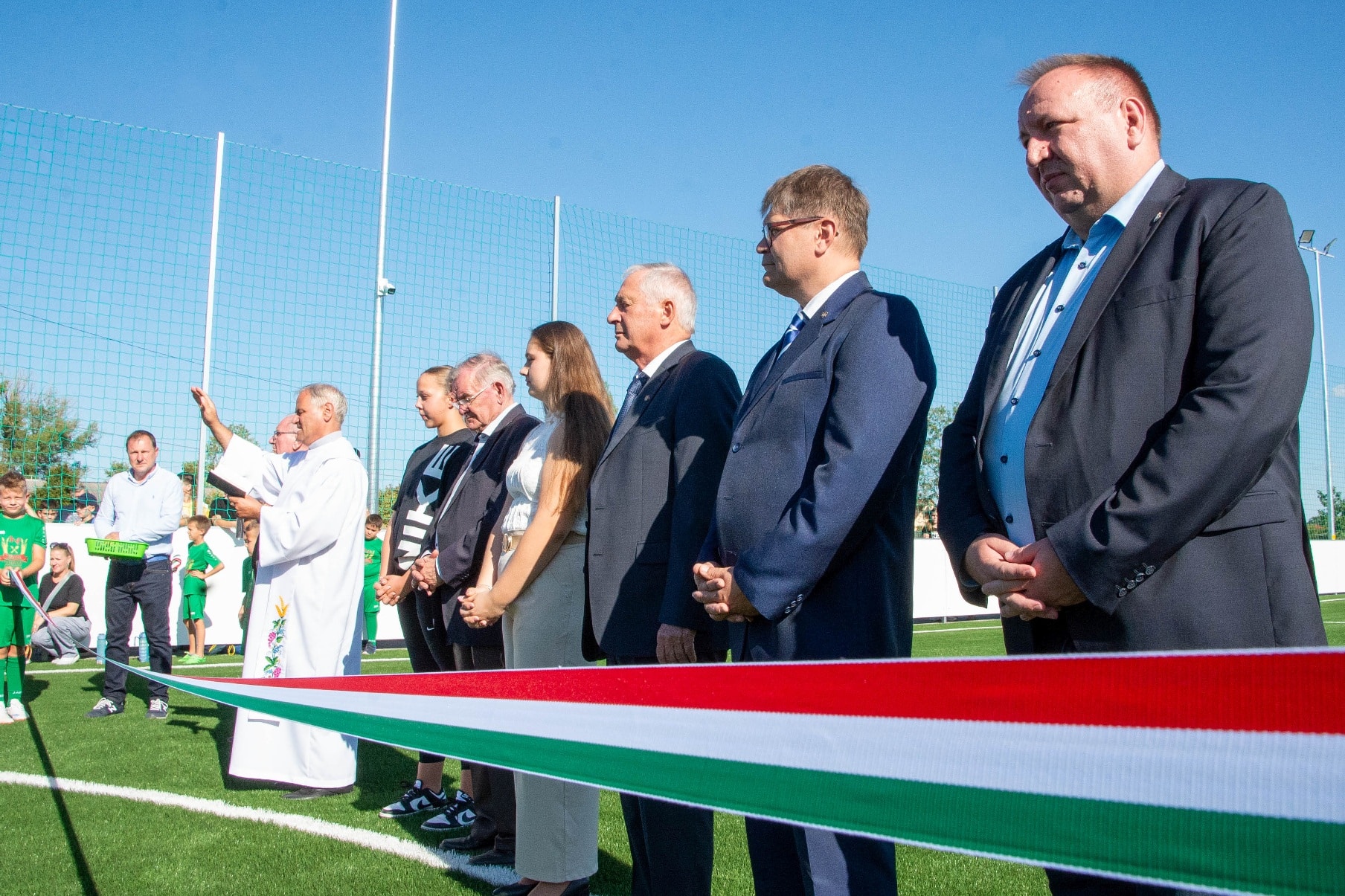 Szabó Mihály köszöntőjében mérföldkőnek nevezte a műfüves pálya létrejöttét a település életében. Hangsúlyozta: bár a fejlesztés fontos előrelépés, még hiányzik a villámhárító és az eredményjelző tábla, így a munka nem tekinthető teljesnek.