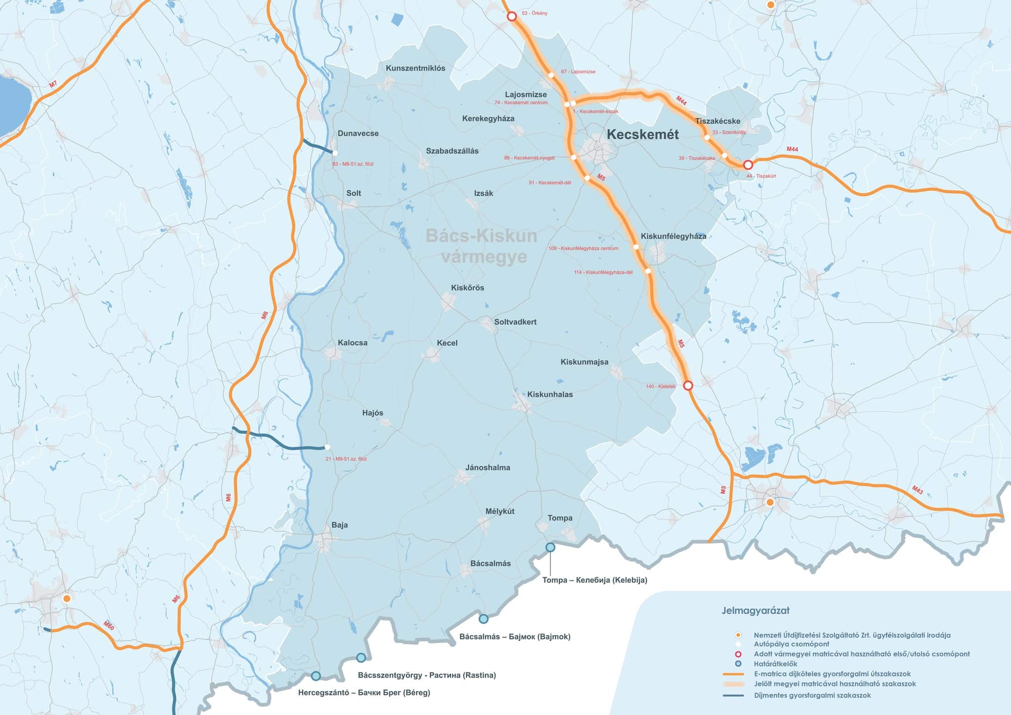A Nemzeti Útdíjfizetési Szolgáltató Zrt. Facebook-oldalán található közleménye szerint 2025. június 8-tól az időalapú használati díjas e-matrica-rendszerben fizetőssé vált az M44-es autóút az M44/Kecskemét-észak és Lakitelek/Tiszakécske csomópontok között is, így az M44-es gyorsforgalmi út teljes egészében - az M44/Kecskemét-észak csomóponttól a Békéscsaba–Gyula / Debrecen–Szeged csomópontig díjköteles.