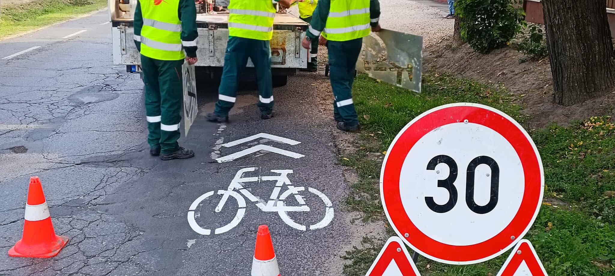 Ma a reggeli órákban nagy erőkkel dolgoztak a Kecskeméti Városüzemeltetési Nonprofit Kft. munkatársai a Kiskőrösi úton, ahol a kerékpársávok újrafestése történt meg. Városunkban több helyen is frissítik a felfestéseket. Eddig például a Hunyadi városban zajlott két helyszínen, valamint a Gyenes téren, a Szent István körúton, most pedig a Kiskőrösi úton kezdték az újrafestést.