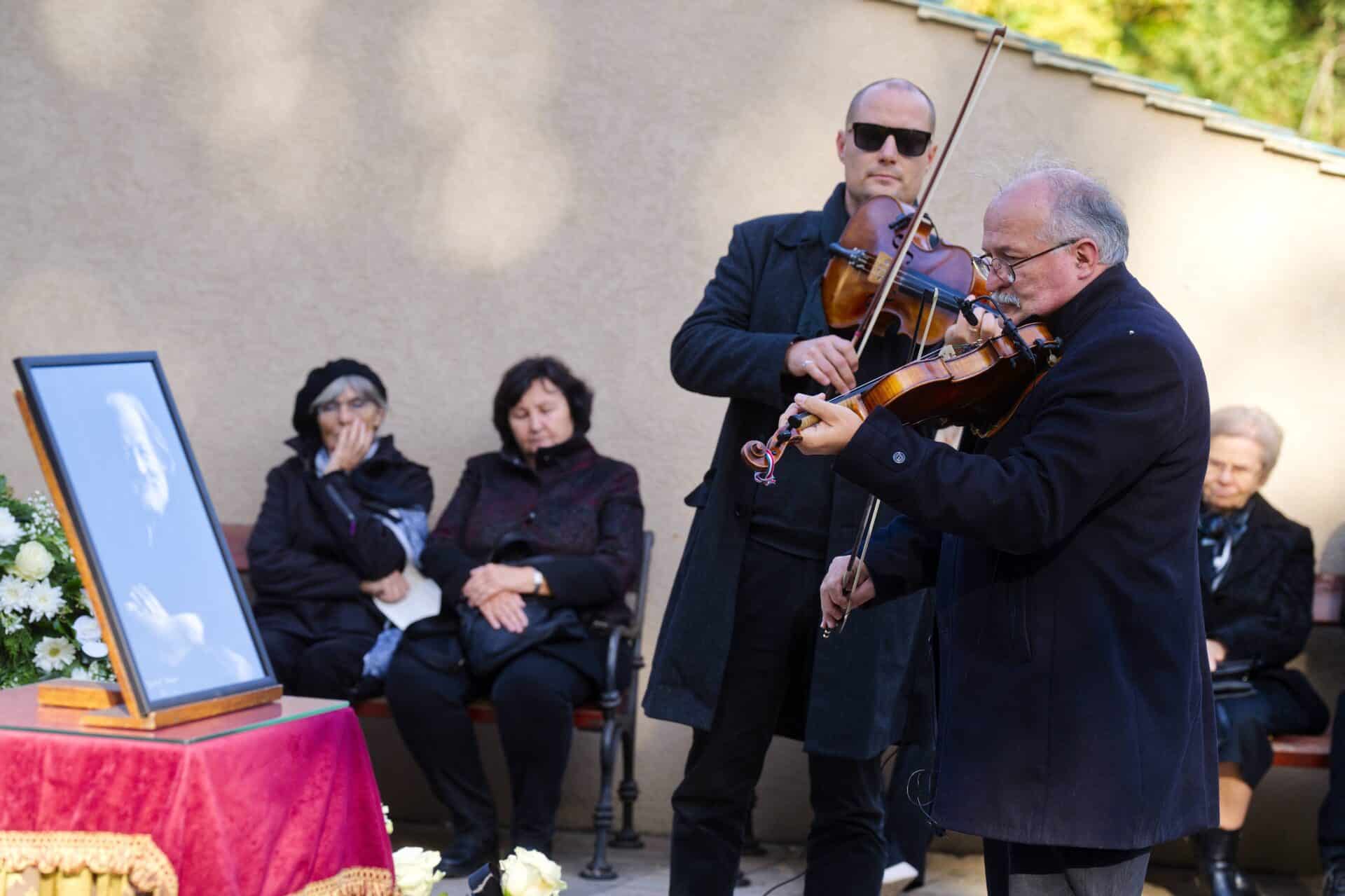 Csík János Kossuth-díjas népzenész hegedűjátéka után Füzi László, A Forrás főszerkesztője, majd a barátok nevében Galánfi András fafaragó népművész mondott emlékező beszédet. A szertartás közben Sirkó László színművész mondott verseket, és megszólalt Kobzos Kis Tamás és a Szélkiáltó együttes egy-egy felvétele is.