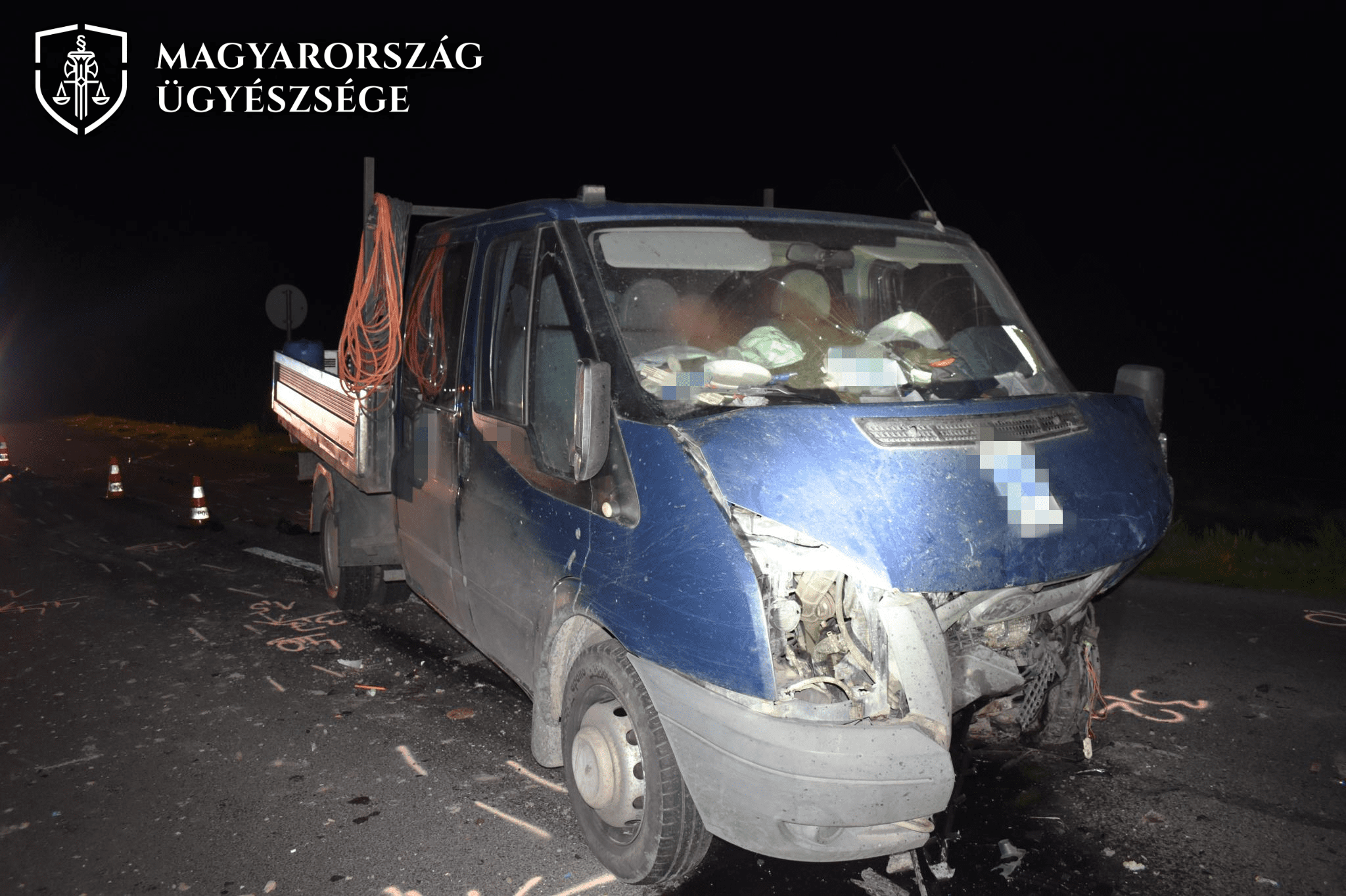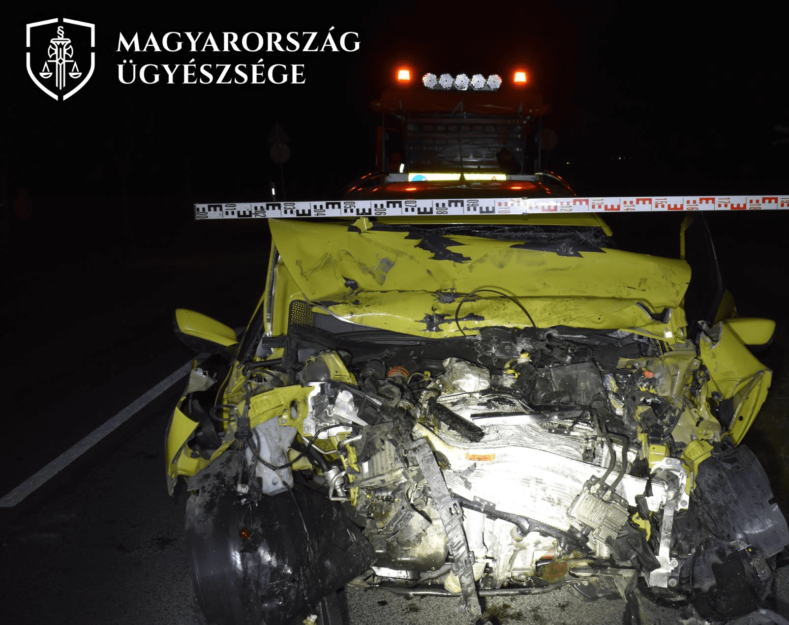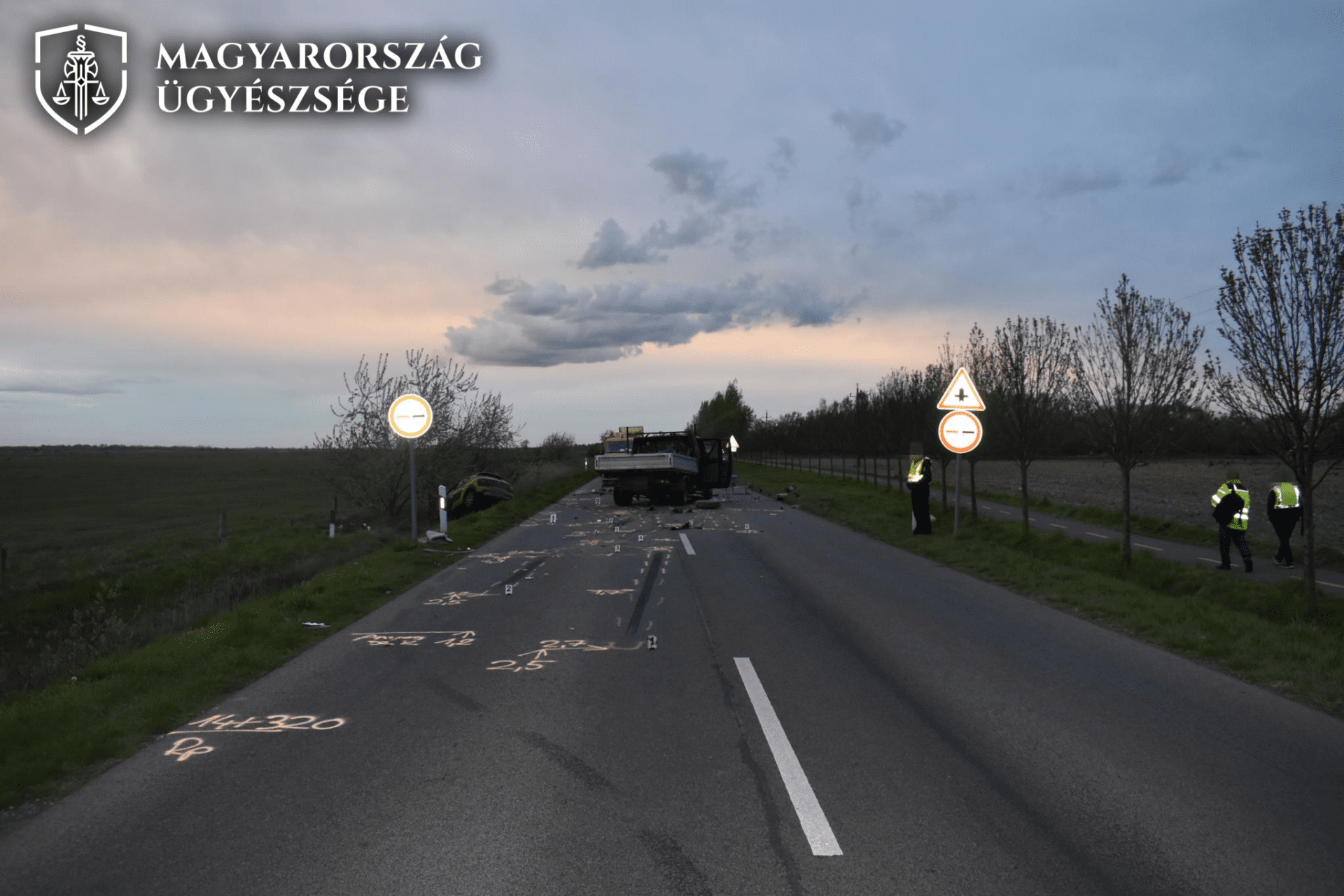 (A rendőrség által a helyszíni szemle során készített képen a baleset helyszíne és a sérült autók láthatók.)