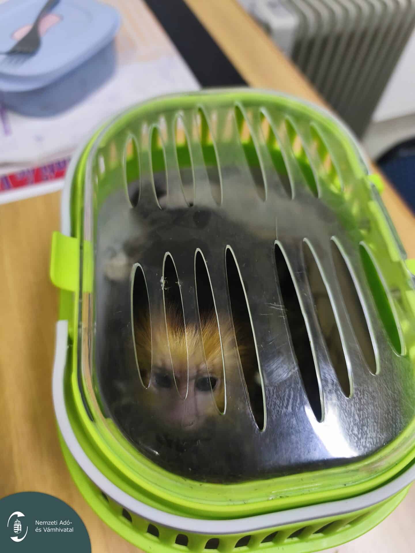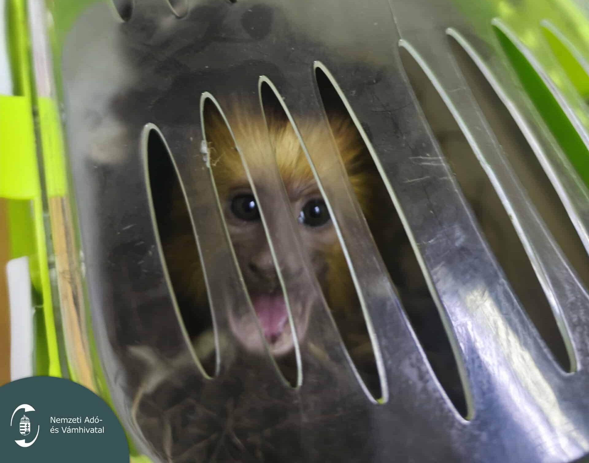 A Nemzeti Adó- és Vámhivatal (NAV) Bevetési Igazgatóságának pénzügyőrei január 18-án éjszaka a rédicsi határátkelőhelynél állítottak meg egy utasokat szállító kisbuszt. A jármű rutinvizsgálatakor, a sofőr feje feletti rekeszből, egy fiatal aranyfejű oroszlánmajom került elő.
