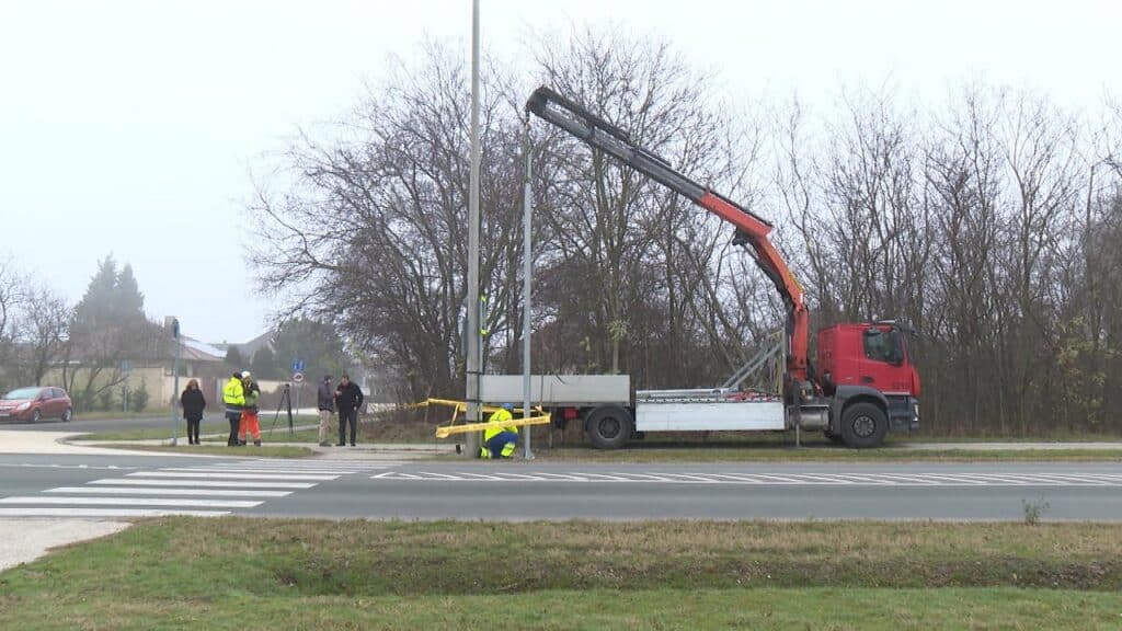 Lassan üzembe helyezik a telepített jelzőlámpákat a Nyugati körút petőfivárosi részén. A munkálatok a végéhez közelednek. A mai napon a jelzőlámpák oszlopait helyezték ki a szakemberek.