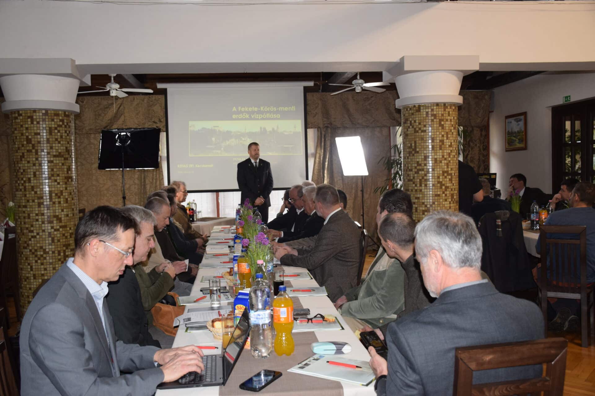 Puskás Lajos (címzetes egyetemi docens) előadásában egy több mint 30 éves vízpótlási projekt megvalósítását mutatta be, amely a Fekete-Körös mentén valósult meg. A gravitációs alapú vízellátó rendszer 38,8 km hosszú csatornahálózattal, 15,7 hektárnyi vízfelülettel és több mint 400 hektárnyi erdőterület érintésével jött létre. A projekt célja az ökológiai vízellátás biztosítása volt a kiszáradás által veszélyeztetett galériaerdők számára. Az eredmények önmagukért beszélnek: több mint 25 madárfaj megjelenése, élőhelyi diverzitás növekedése, valamint a tájpotenciál és az erdők ellenálló-képességének javulása.